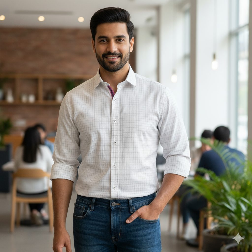 Elevate your style with our pure cotton check shirt fabric from Raymond. Premium quality, luxury fabric perfect for any occasion. Take a daring step and make a statement with this party and wedding wear fabric. Get ready to turn heads and feel luxurious in this men's shirt fabric.