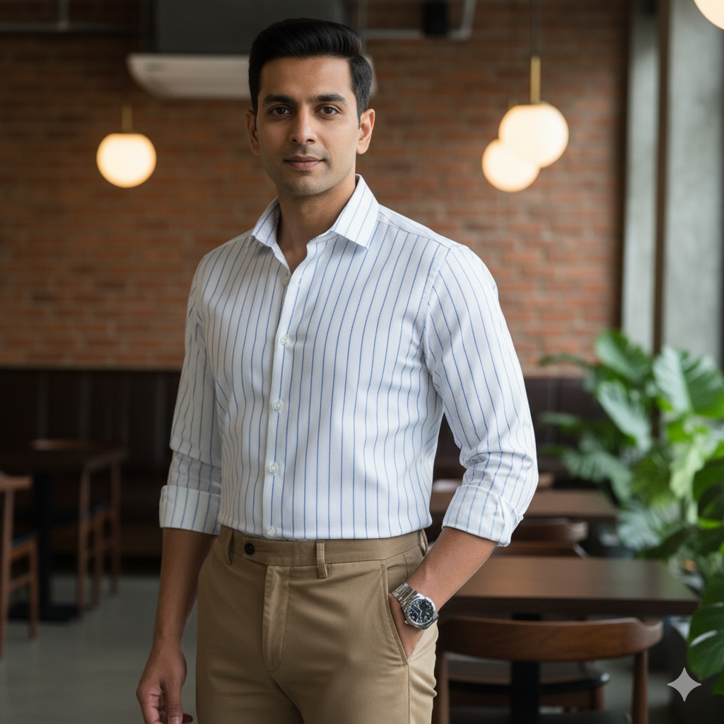 Introducing our premium quality Raymond Stretchable Giza Cotton Broad Lining shirt fabric in a luxurious blue and white color. Made from pure Giza cotton, this formal fabric is perfect for parties and weddings. Experience the best with Raymond.