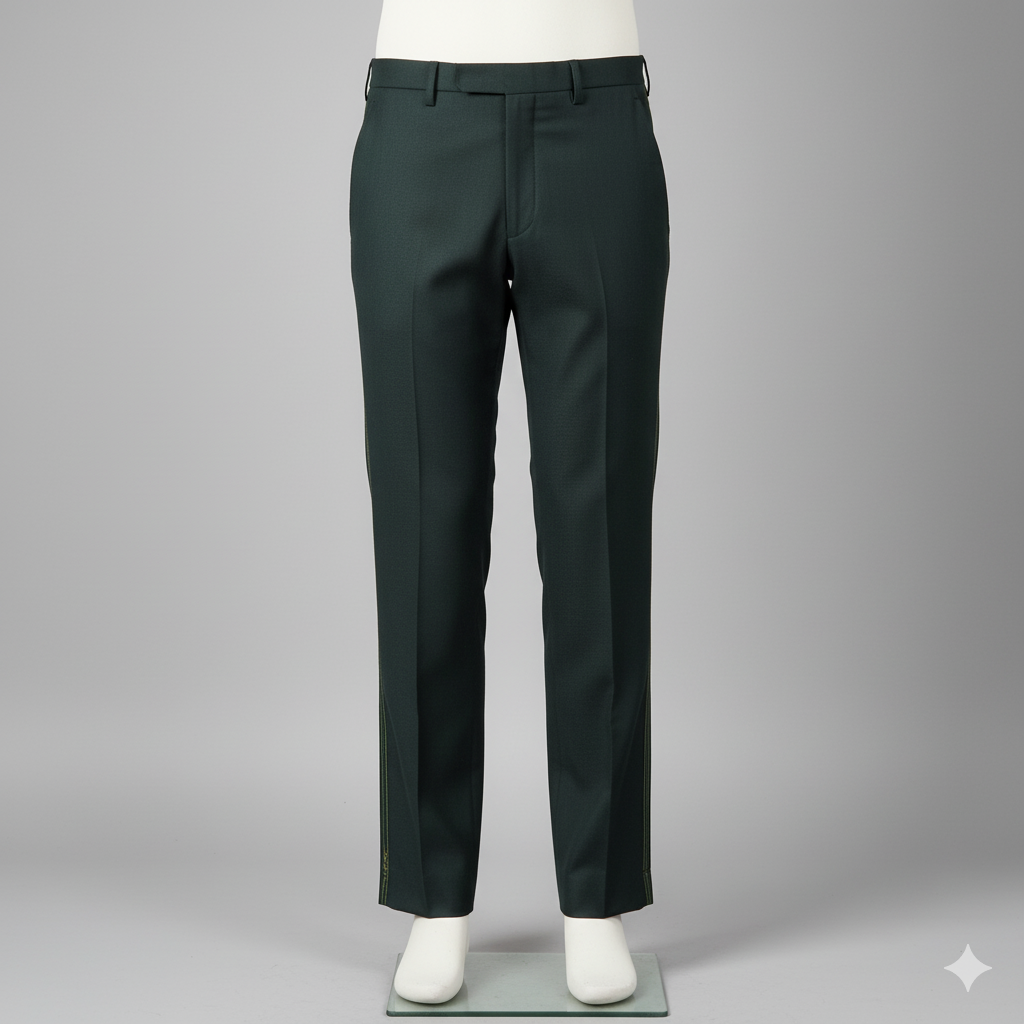 Experience the luxury of Reid n Taylor trouser fabric. Made with premium quality wool blend, this dark Fedgrau green fabric is perfect for any occasion, from parties to weddings. Its smooth and soft texture elevates any men's formal trouser, making it a must-have for your wardrobe. Trust in the luxury and expertise of Reid n Taylor.