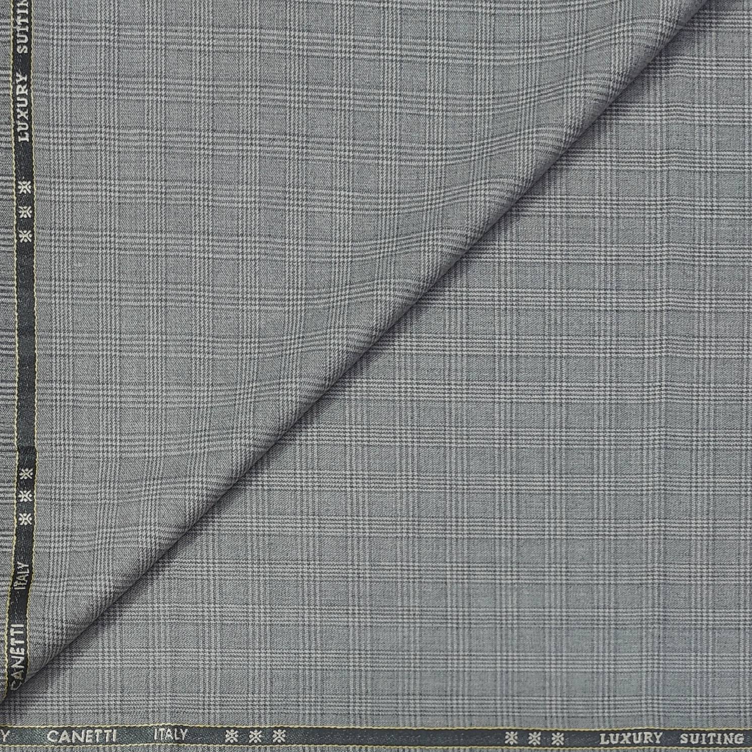 Indulge in Canetti's luxury poly viscose Check trouser Fabric from Italy. This premium quality fabric is perfect for any occasion - whether for a formal event, party or wedding. Its light grey color adds an elegant touch to men's trousers. Elevate your style with Canetti.