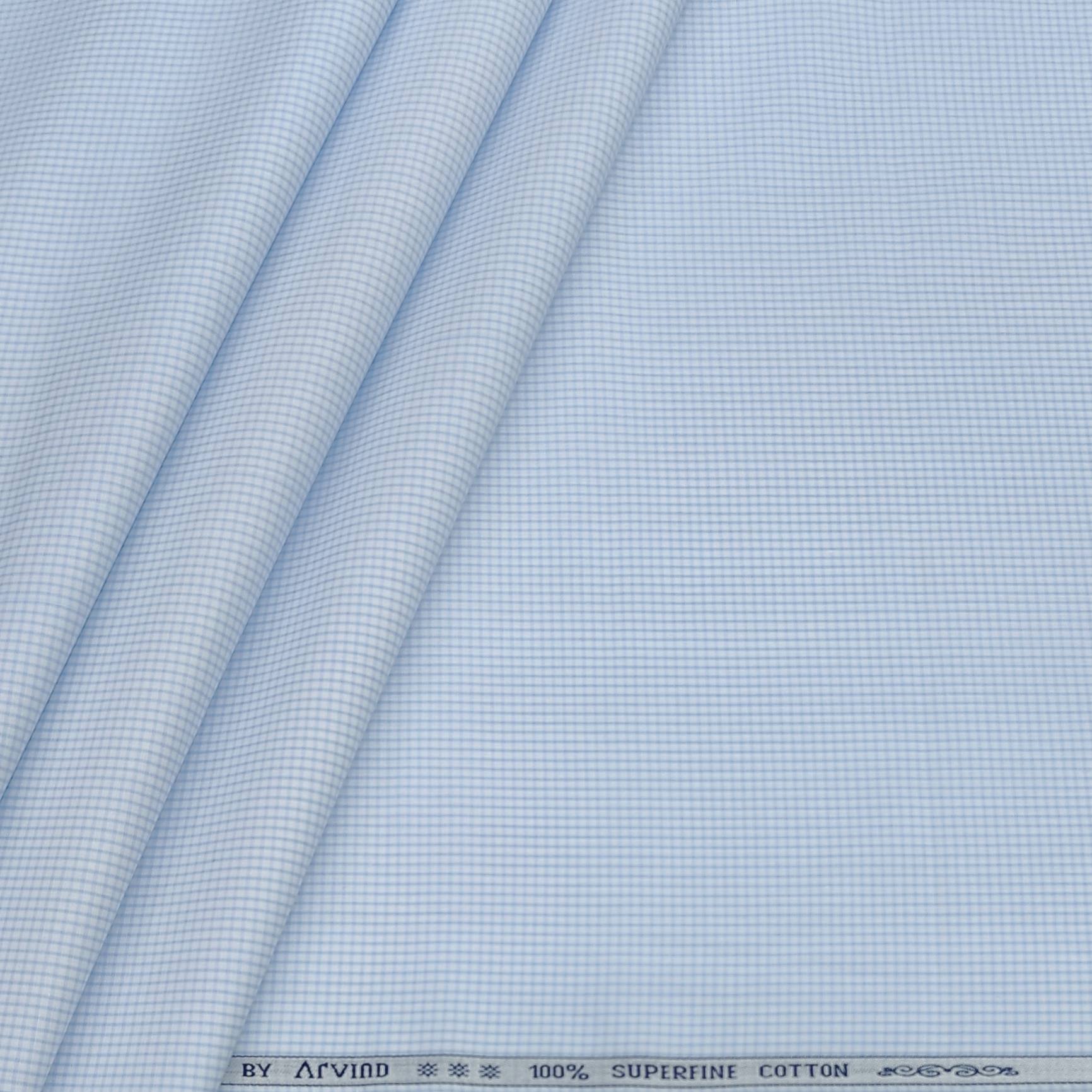Shirt Fabric Arvind 100% Pure Cotton Pin Check Colour Blue
