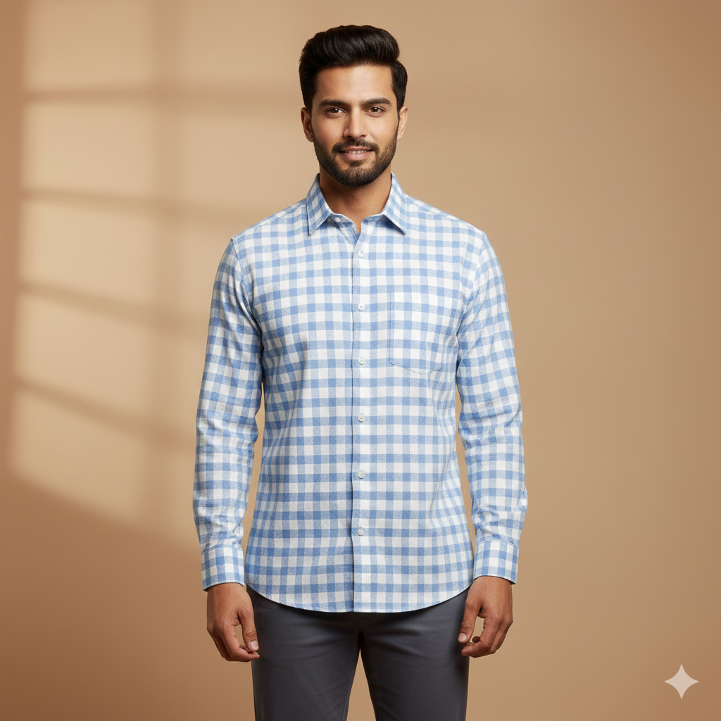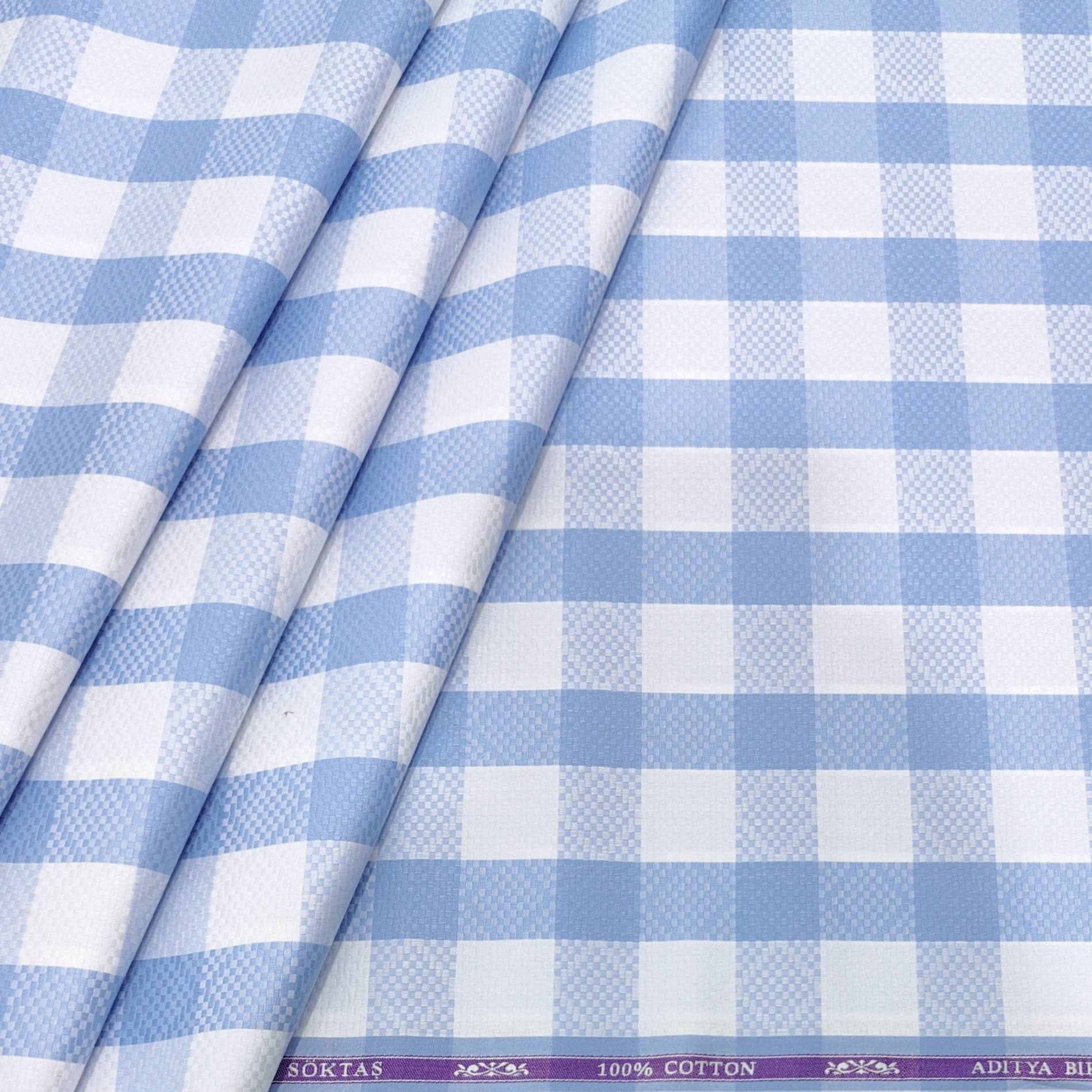 This Soktas shirt fabric offers premium quality and luxury for formal or casual occasions. Made from pure Giza cotton, it boasts a stylish blue and white check pattern with dobby detailing. Perfect for weddings or any occasion, this men's shirt fabric is a must-have for sophisticated style.