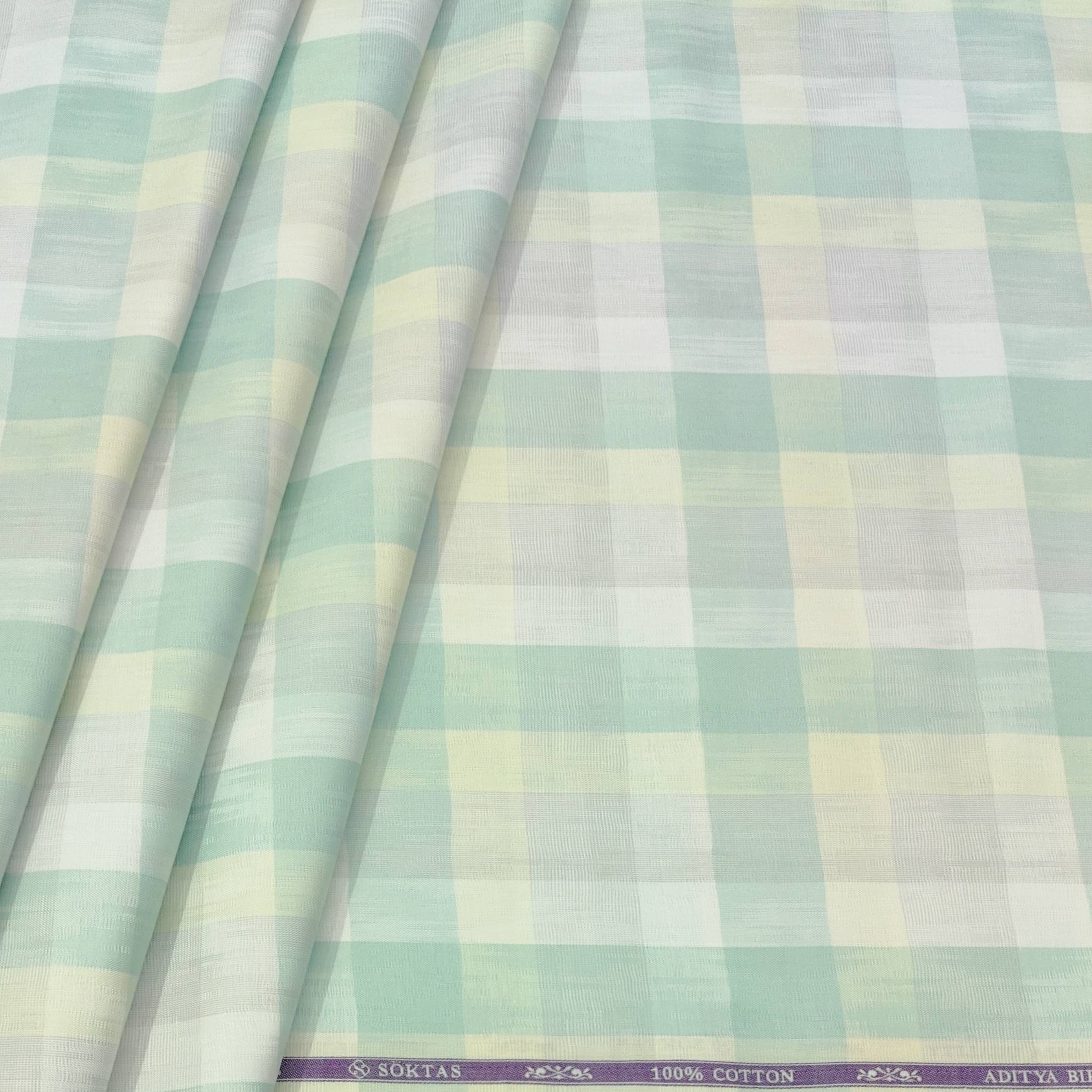 Indulge in luxury with our Soktas Finest Giza Cotton Check Shirt Fabric in Mint Green and Silver. Crafted from premium Soktas fabric, this exclusive men's fabric is perfect for party, wedding, and formal wear. Elevate your style with the finest Giza cotton and make a statement wherever you go.