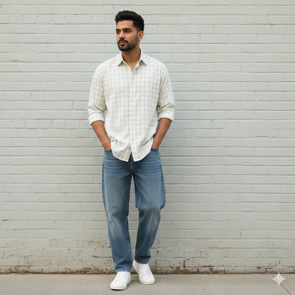 Shirt Fabric Sotas Finest Giza Cotton Check Colour Butter Beige