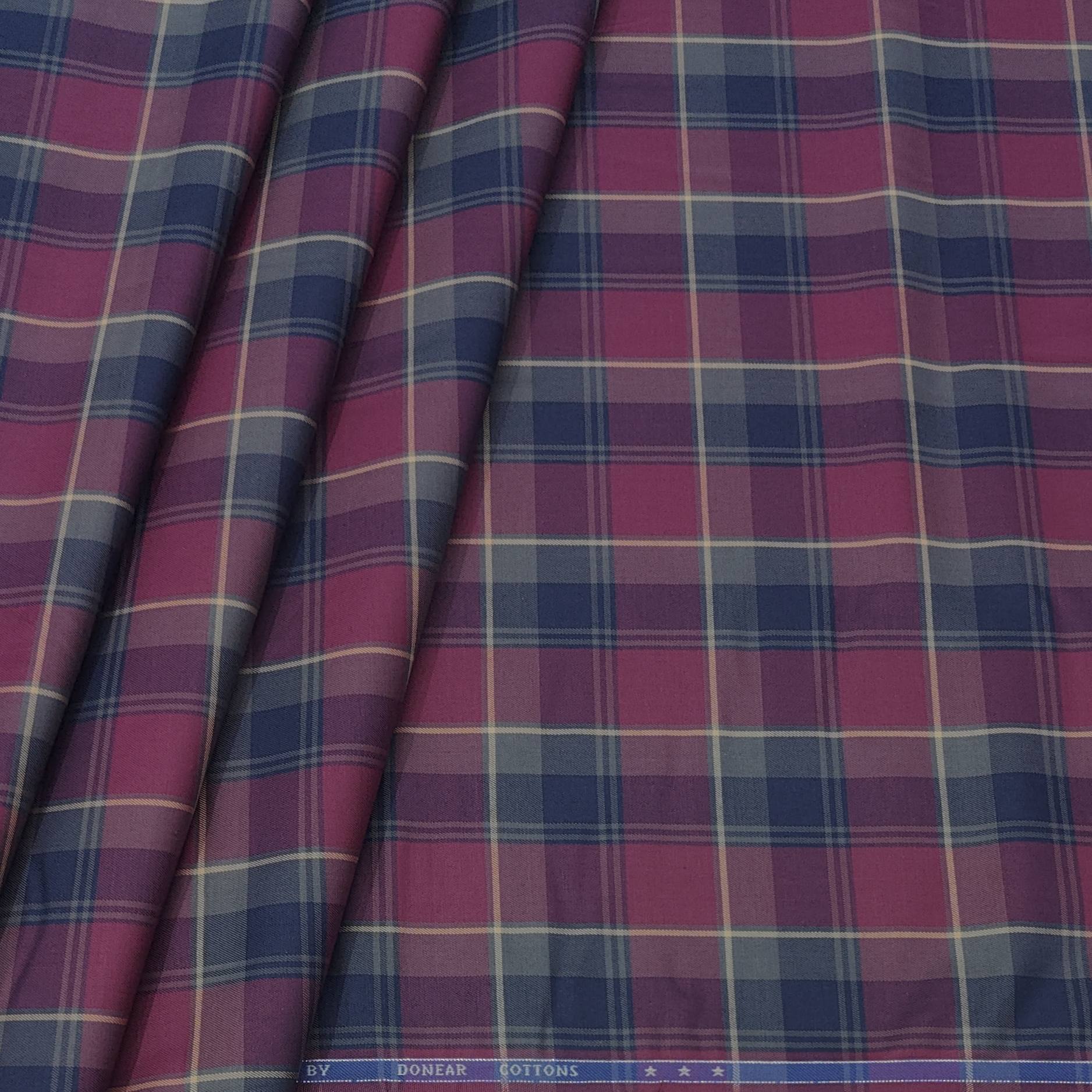 Shirt Fabric Donear Premium Giza Cotton Broad Check Colour Maroon Red