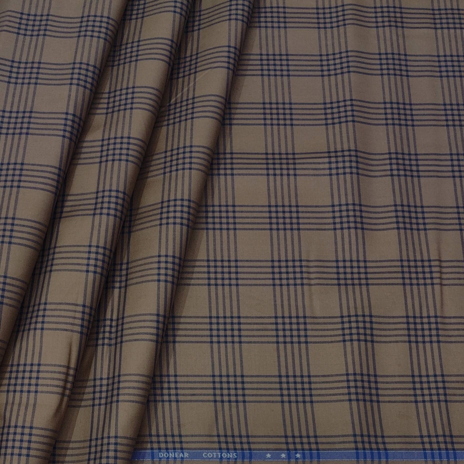 This Donear Giza Cotton Shirt Fabric offers a luxurious and premium quality option for men's shirt needs. With its pure cotton material and broad check design, it's perfect for both party wear and casual occasions. Elevate your style with this Peanut Brown fabric.
