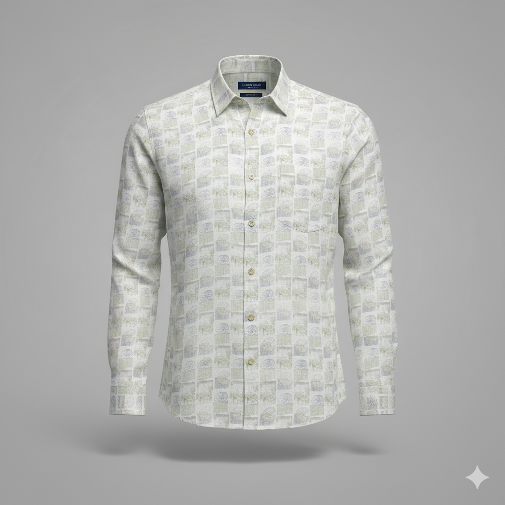 Shirt & Kurta Fabric Linen Club Pure Linen Printed Colour Grey N White