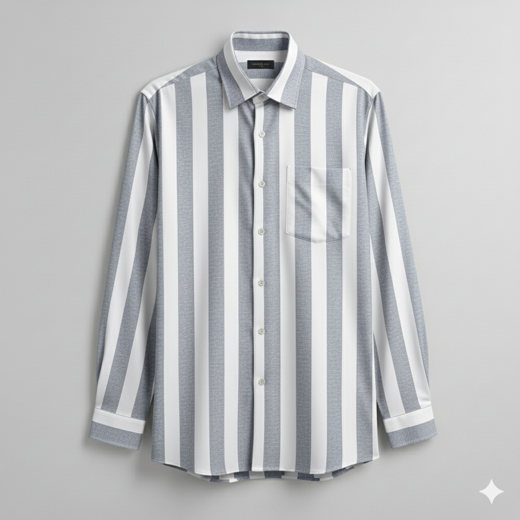 Indulge in luxury with our ManTire shirt fabric. Crafted with premium quality poly cotton, this fabric boasts a stylish grey and white patta lining. Perfect for party and wedding wear, or elevate your formal attire with this exclusive men's shirt fabric.