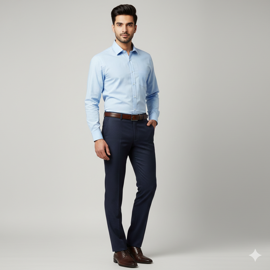 Elevate your wardrobe with the Donear 4Way Lycra Premium Pin Check Trouser Fabric in dark blue. This luxurious, stretchable fabric ensures a perfect fit, combining comfort and elegance for formal events, parties, or weddings. Experience the confidence that comes with premium quality tailored just for you!