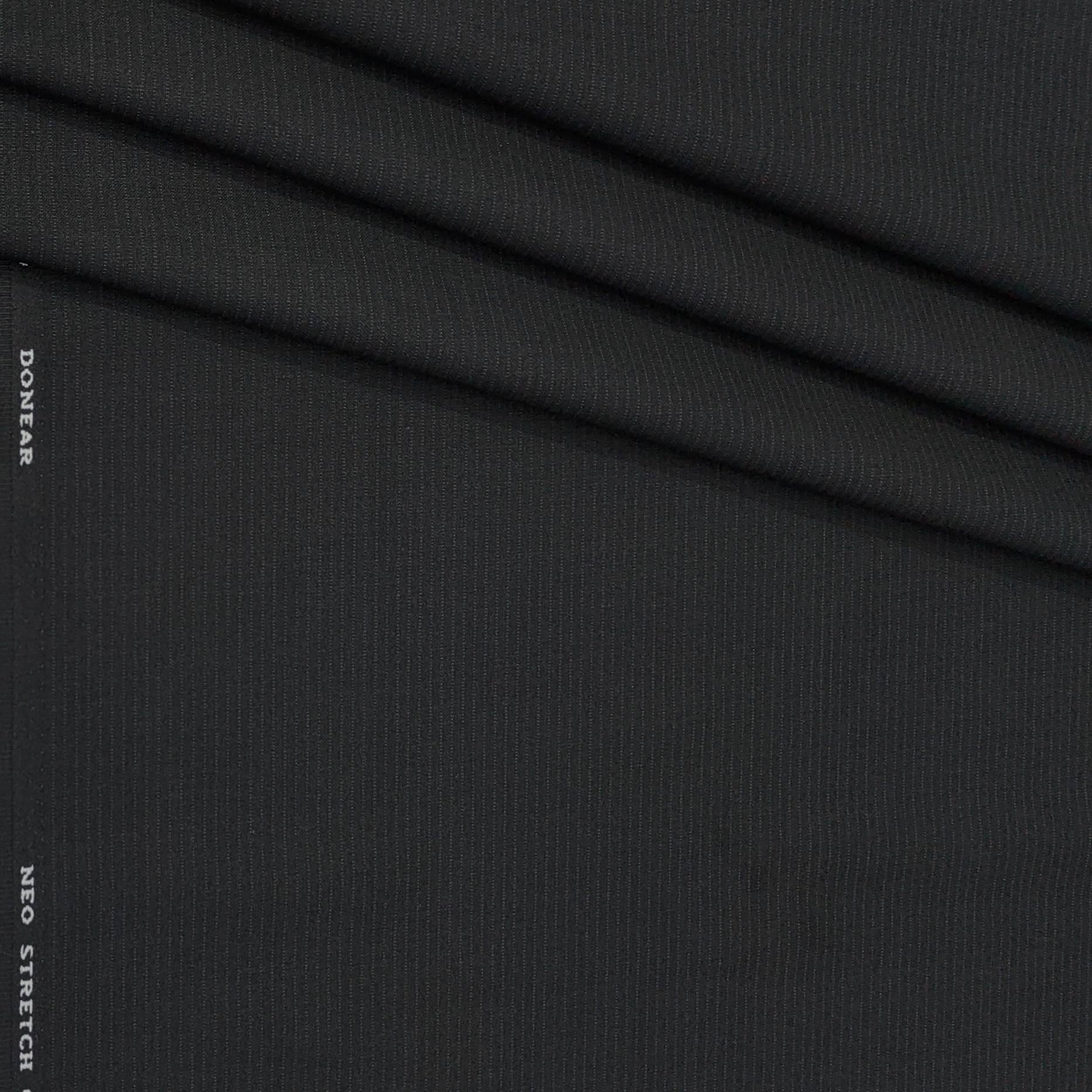 Elevate your style with Donear's Premium Pin Lining Trouser Fabric in classic black. Crafted from luxurious 4-way Lycra, this stretchable fabric offers comfort and flexibility, making it perfect for parties or weddings. Enjoy the confidence of looking sharp while feeling at ease all day long.