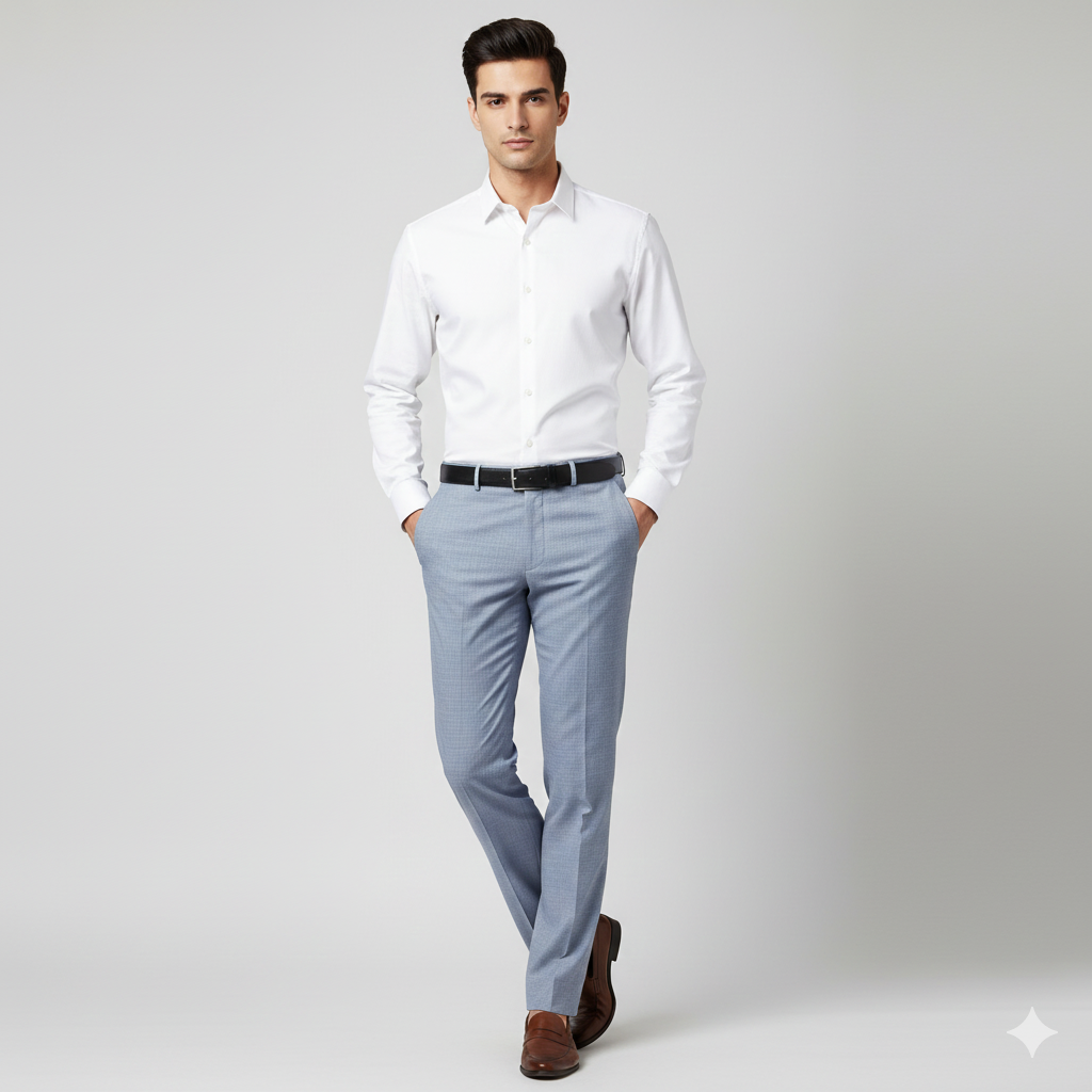 Enhance your wardrobe with Raymond Pure Cotton Check Color Silver Blue trouser fabric. Made with premium quality wool, this formal trouser fabric is perfect for party wear and wedding occasions. With a touch of luxury, this fabric is designed to elevate your style and make a statement.