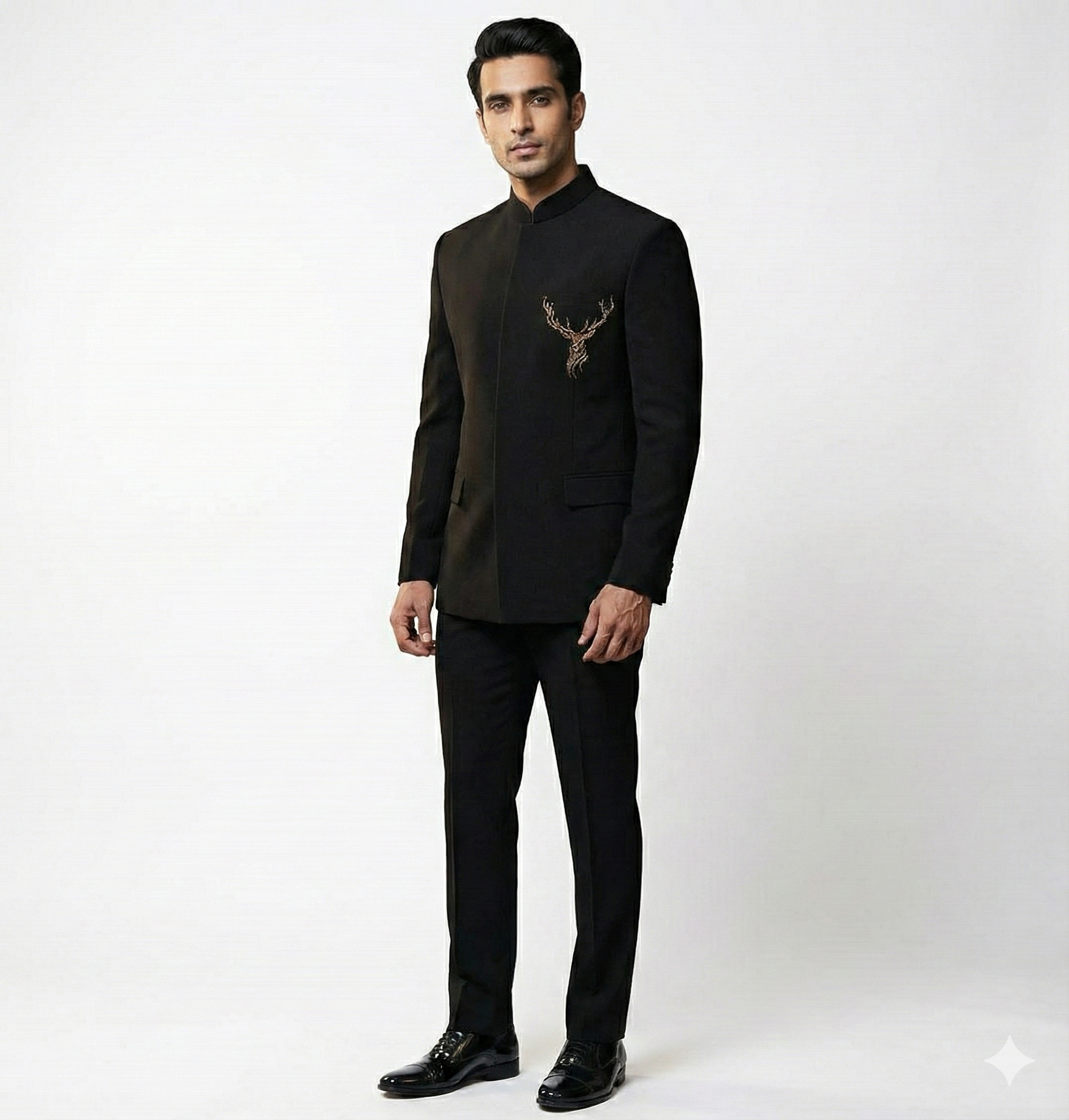 Expertly crafted in Italy, the ManTire Premium Designer Bandhgala Suit Fabric exudes elegance and sophistication. Made from the finest fabric, this z black suit features intricate handwork that adds a touch of luxury. Perfect for special occasions, be prepared to make a lasting impression with this ceremonial collection piece.