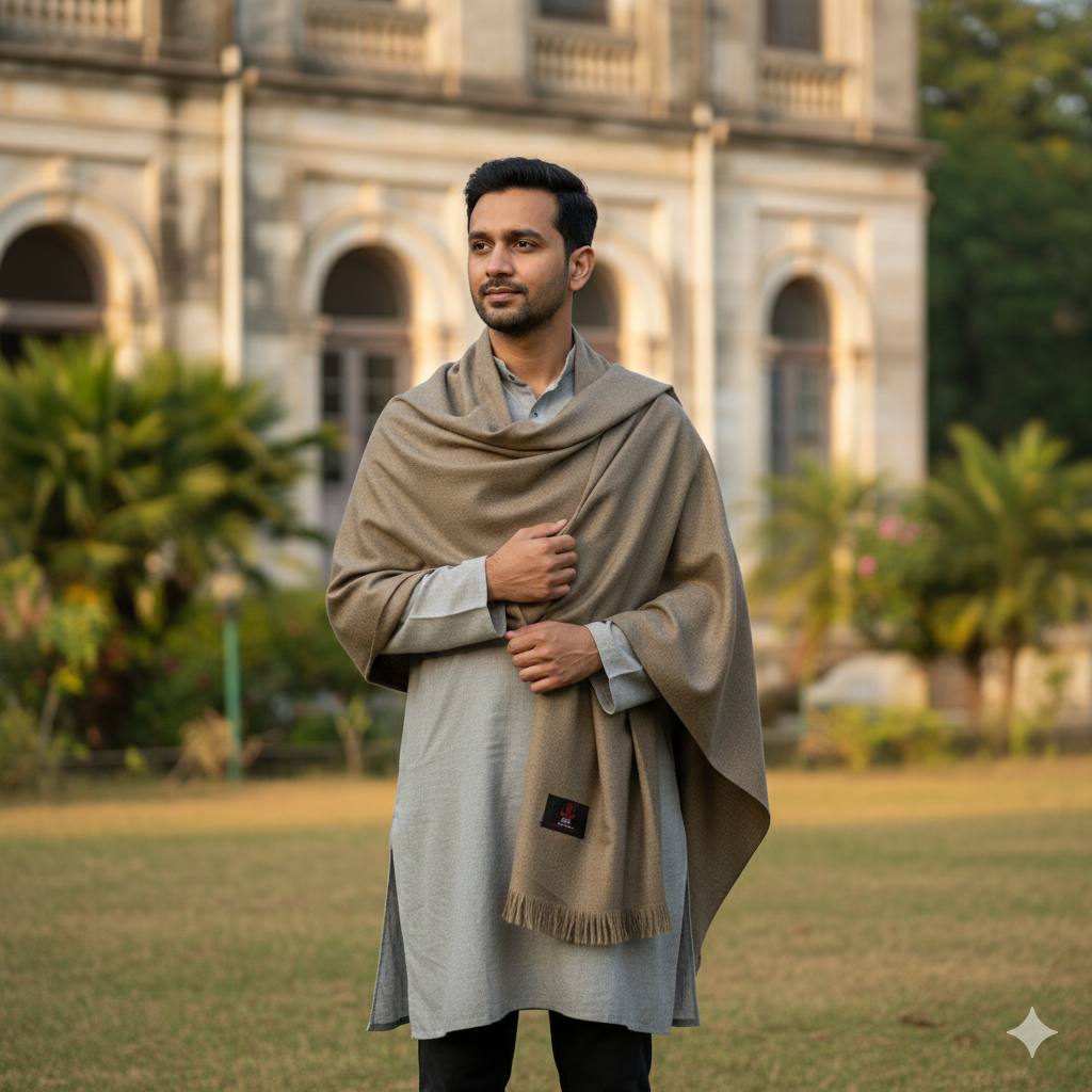 Introducing the Modella Shawl Lohi in a sleek dark brown color. This men's shawl, also known as a "gents shawl," is a perfect winter gifting option. Stay warm and stylish with the Lohi, a must-have for the colder months ahead.