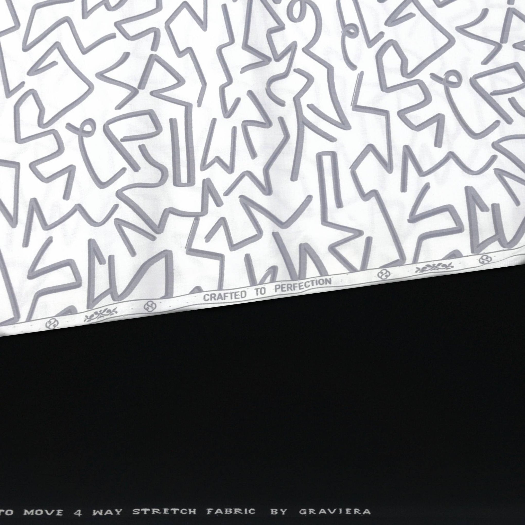 Pant Shirt Combo Pack Graviera Lycra Black Pant Printed Giza Cotton Light Grey White Shirt Fabric