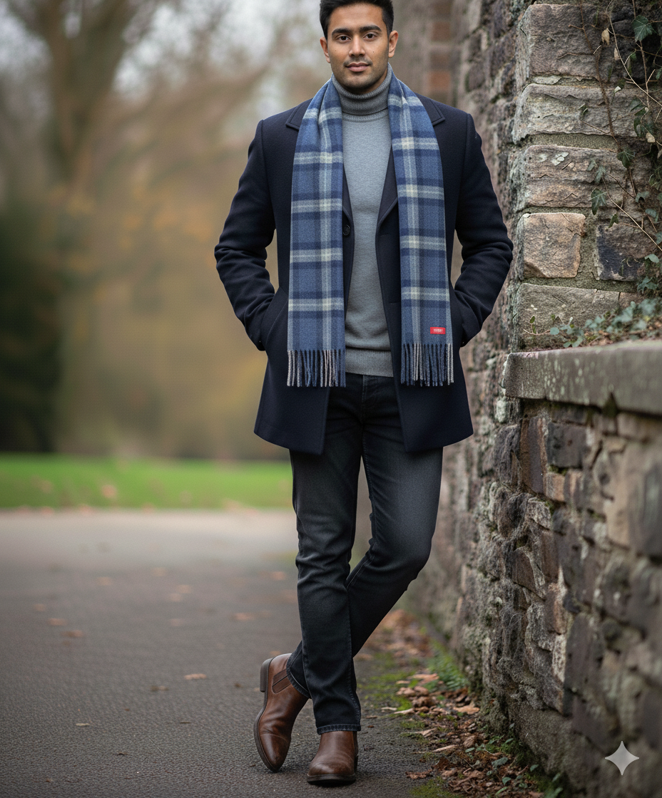 Wrap yourself in luxury this winter with the Raymond Pure Wool Muffler in Blue. Made with premium quality pure wool, this men's muffler is the perfect accessory to keep you warm and stylish. Elevate your winter wardrobe with this luxurious and high-quality muffler from Raymond.