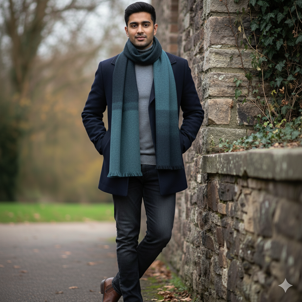Raymond Pure Wool Muffler Colour Blue N Black