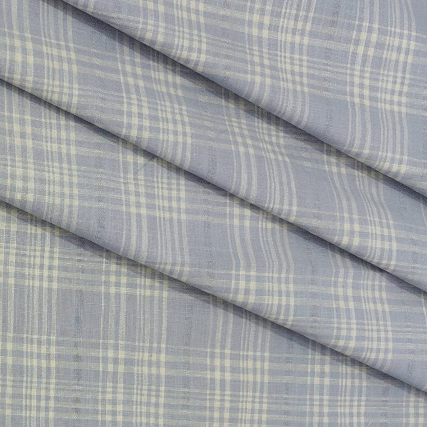 Experience luxury and style with our premium quality Shirt Fabric ManTire. Made with 100% cotton, this formal shirt fabric features a bold check pattern and subtle slub texture, perfect for both formal occasions and parties. Take a risk and stand out from the crowd with this light bluish grey fabric.