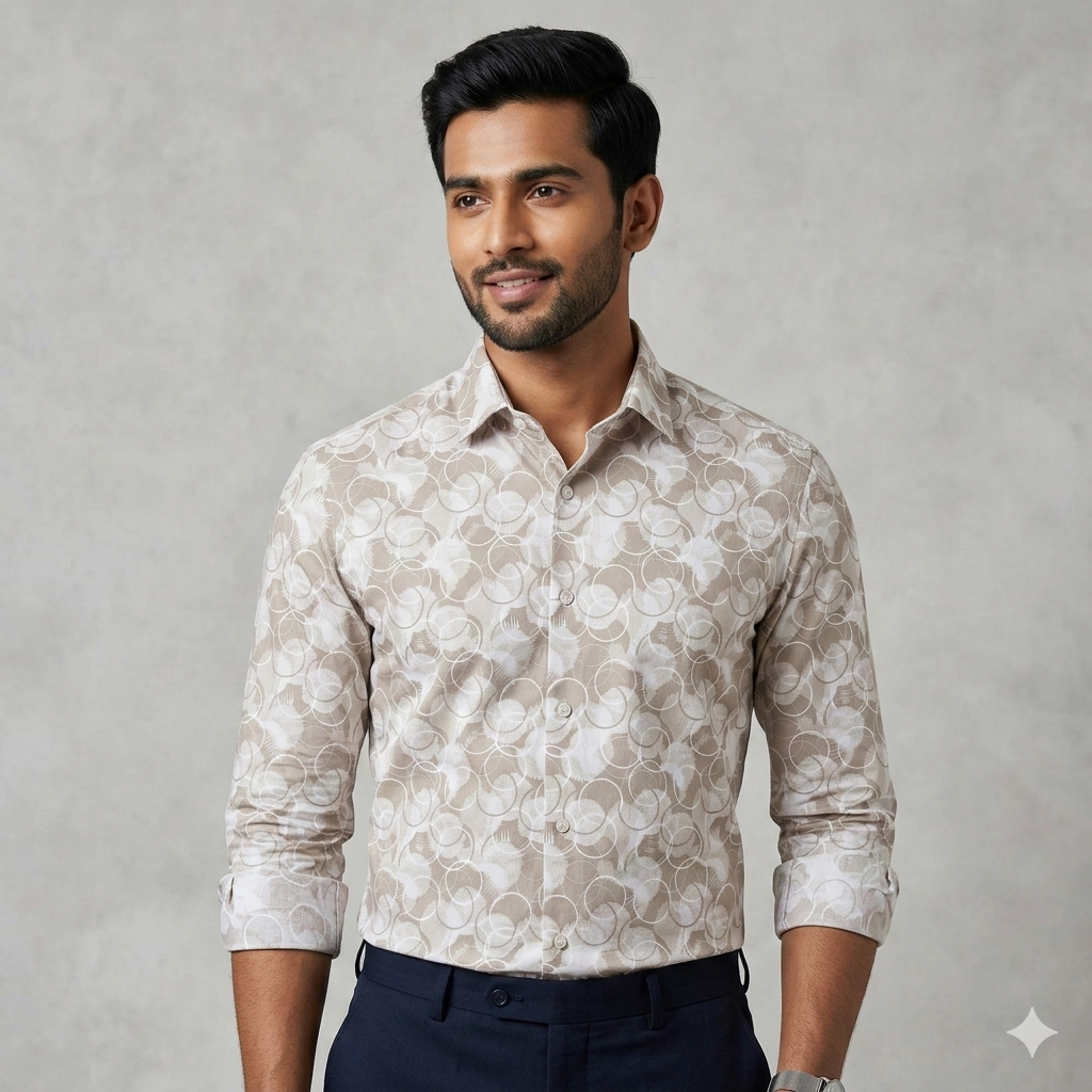 Shirt Fabric ManTire Giza Cotton Printed Colour Ash Brown