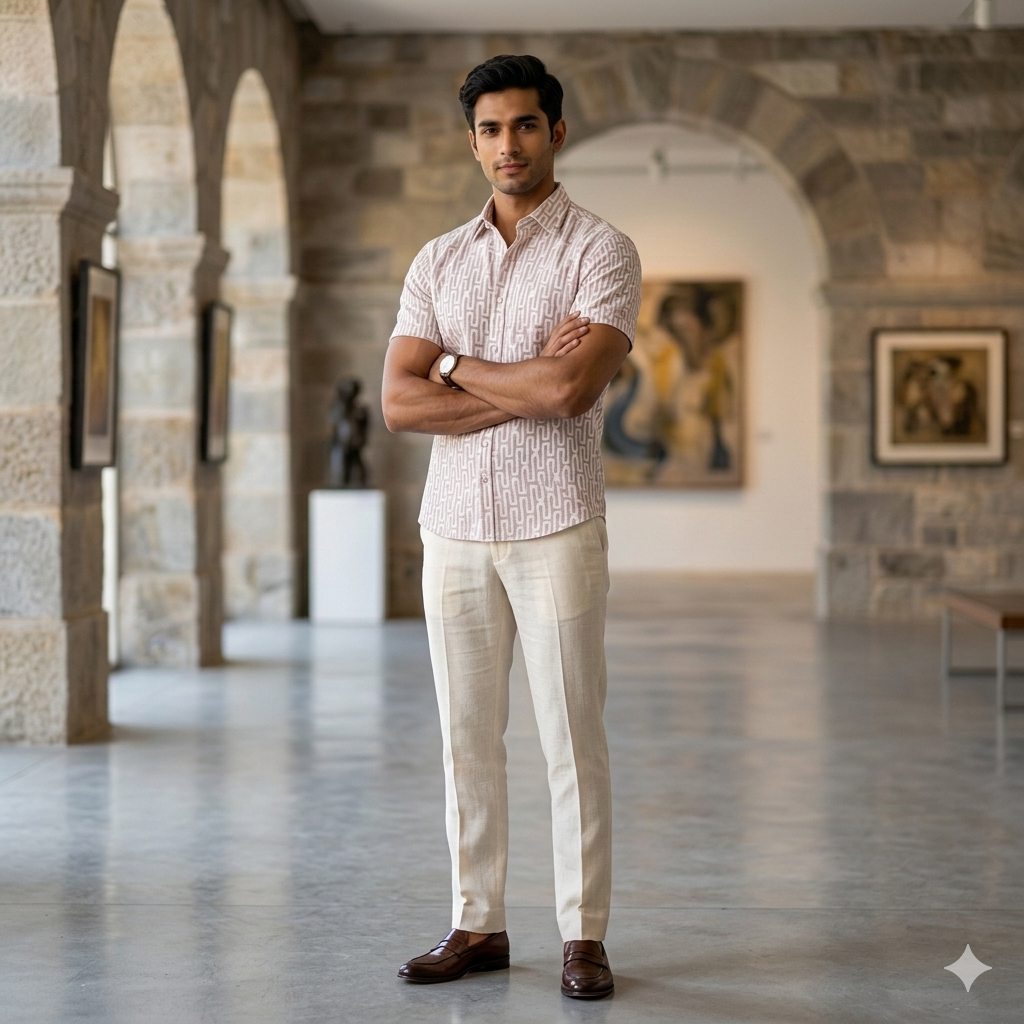 Shirt Fabric Raymond 100% Cotton Printed Colour Beige Cream