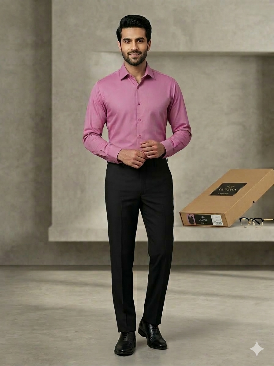 Pant Shirt Combo Siyaram Black Dotted Trouser with Hot Pink Plain PolyViscose Shirt Fabric