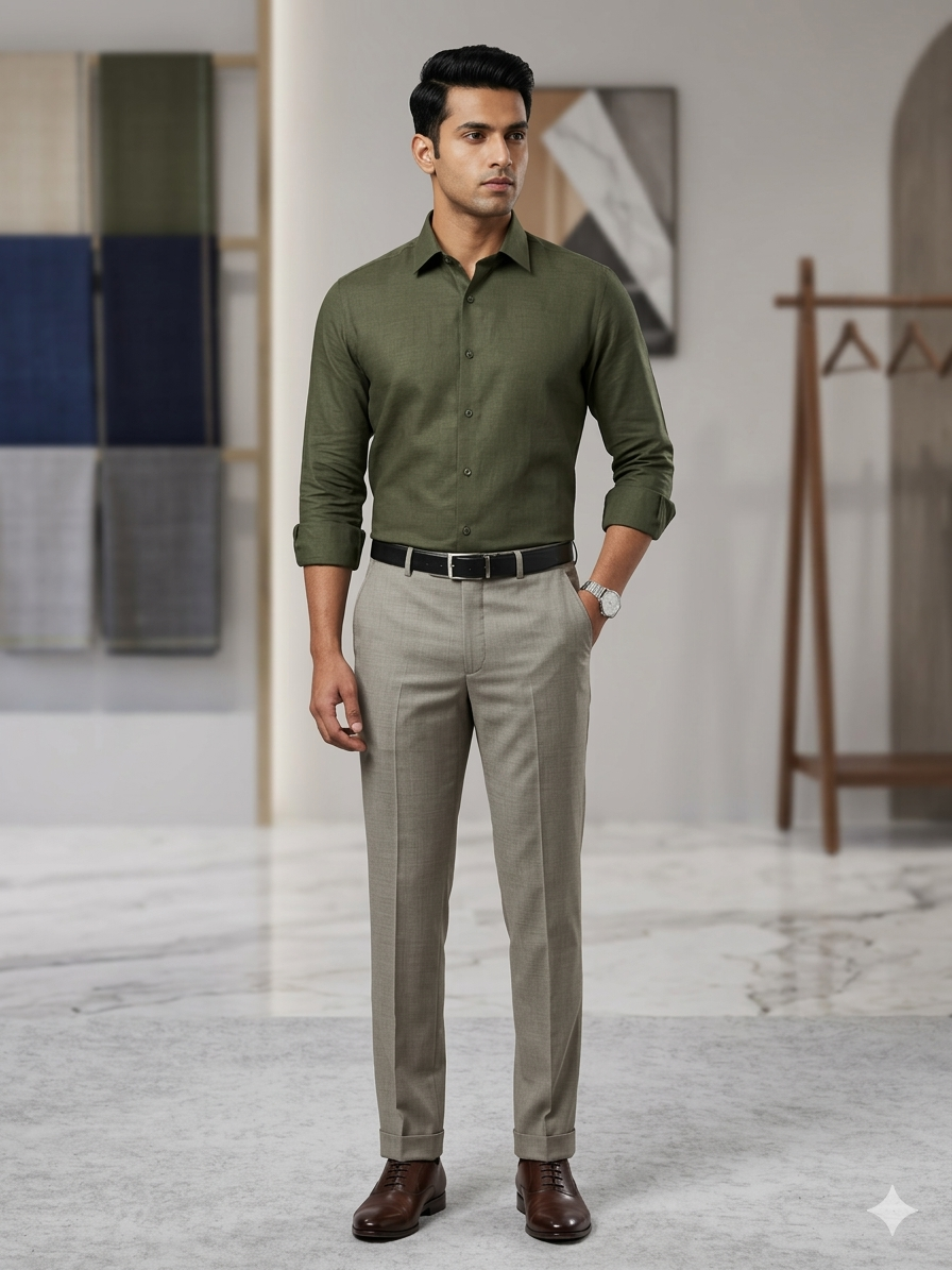 Pant Shirt Combo Siyaram Cardamom Green Texture Trouser with Millitary Green Plain PolyViscose Shirt Fabric