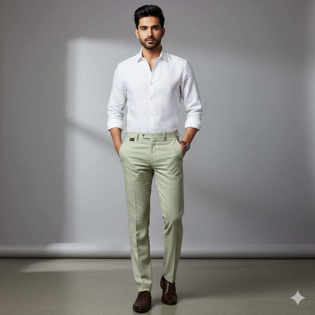 Step into style (and maybe a little mischief) with the Donear Poly Viscose Zig Zag trousers in pista green! Perfect for swanky weddings or when you're just looking to make your buddies a tad jealous, these premium trousers promise to elevate your mood and your wardrobe. Slip into luxury and strut your stuff!.) Get ready to strut your stuff in style!