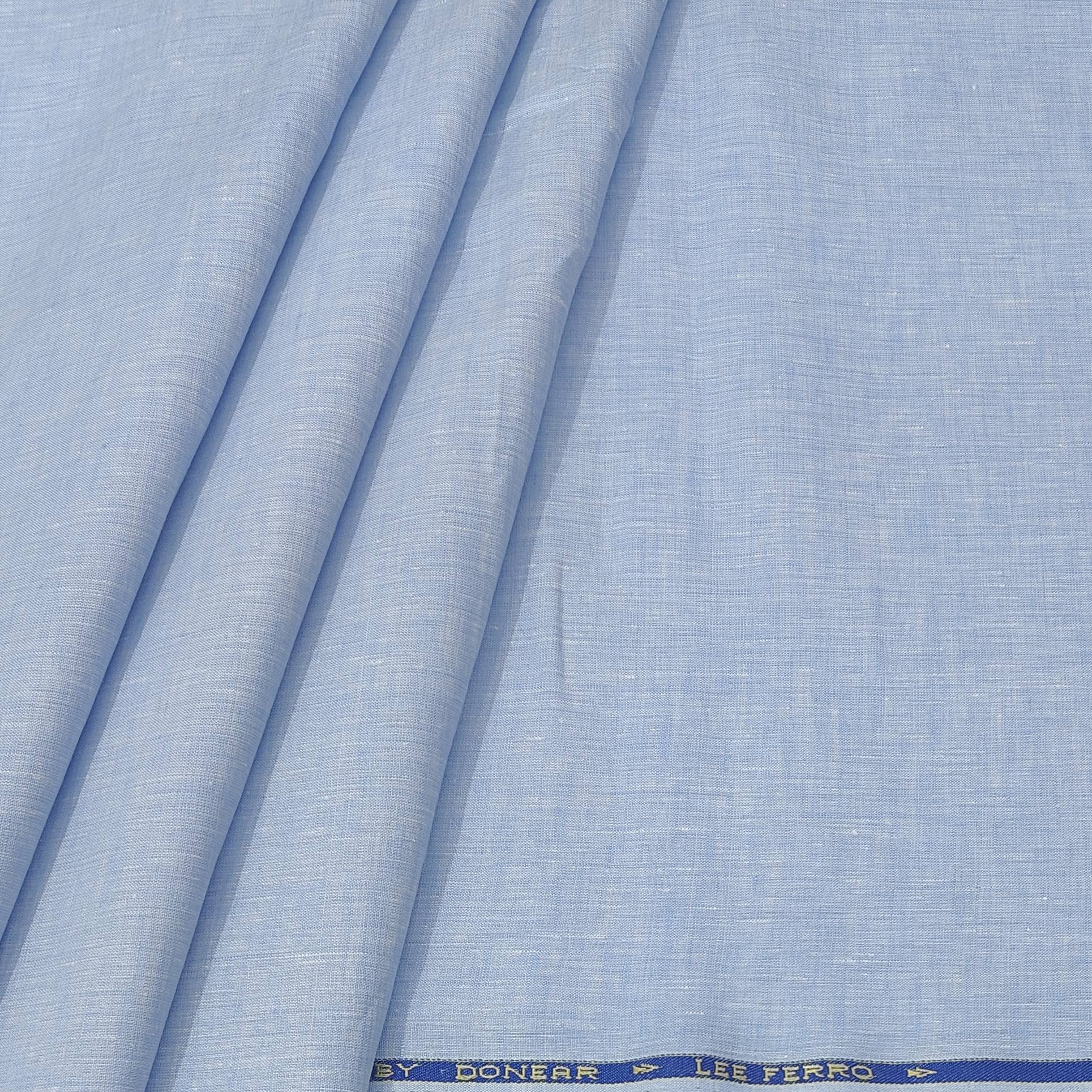 Elevate your style with this premium quality shirt fabric from Donear. Made from 100% European linen, this 60lea plain light blue fabric is a perfect choice for formal occasions, parties, and weddings. With a luxurious feel and impeccable quality, this fabric is a must-have for your wardrobe.