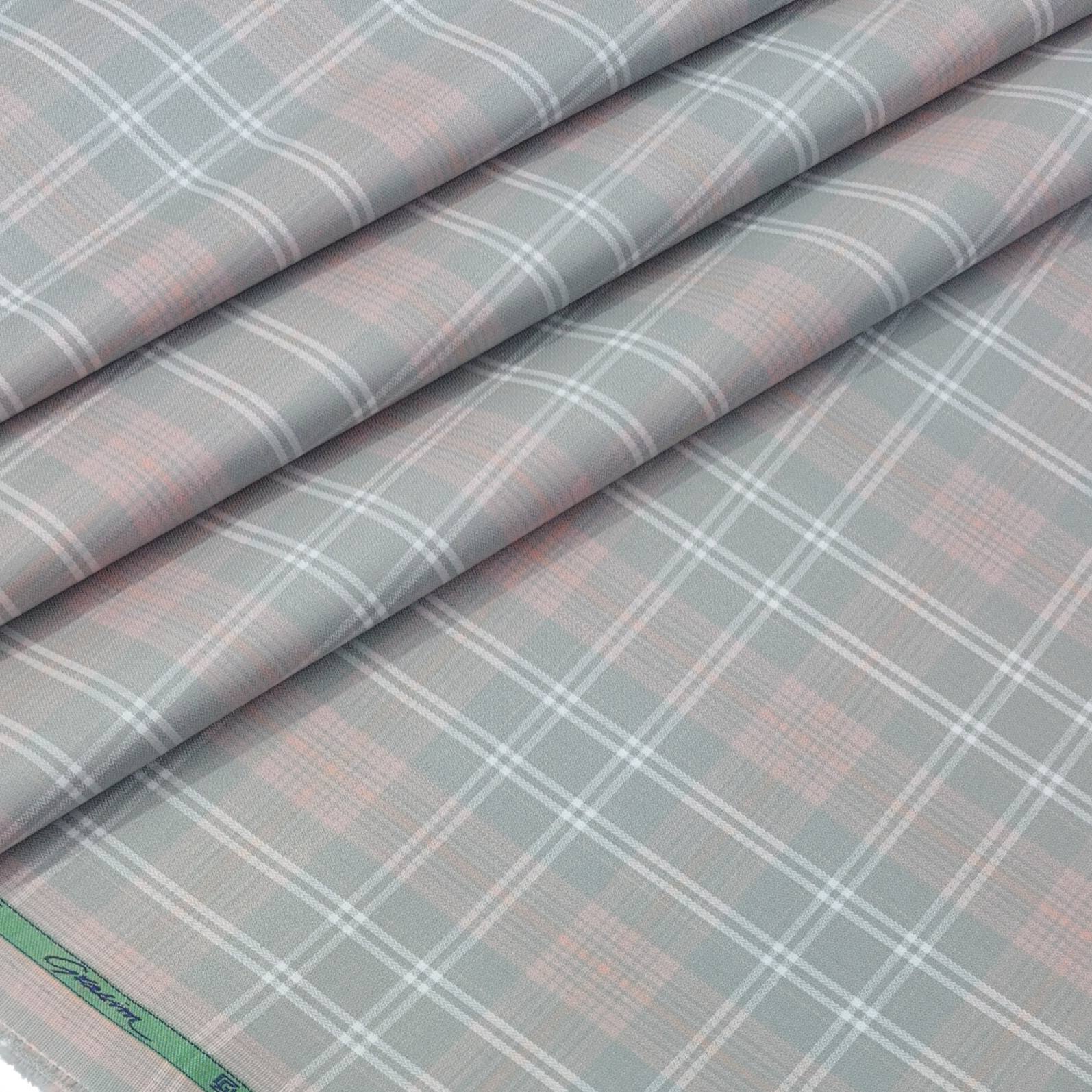 This Grasim 100% cotton broad check fabric is perfect for those looking for a premium quality and luxurious shirt fabric. Ideal for formal occasions such as weddings or parties, this fabric boasts a soft and comfortable feel that is perfect for men's shirts. Crafted with pure cotton, this fabric guarantees a classic and sophisticated look.