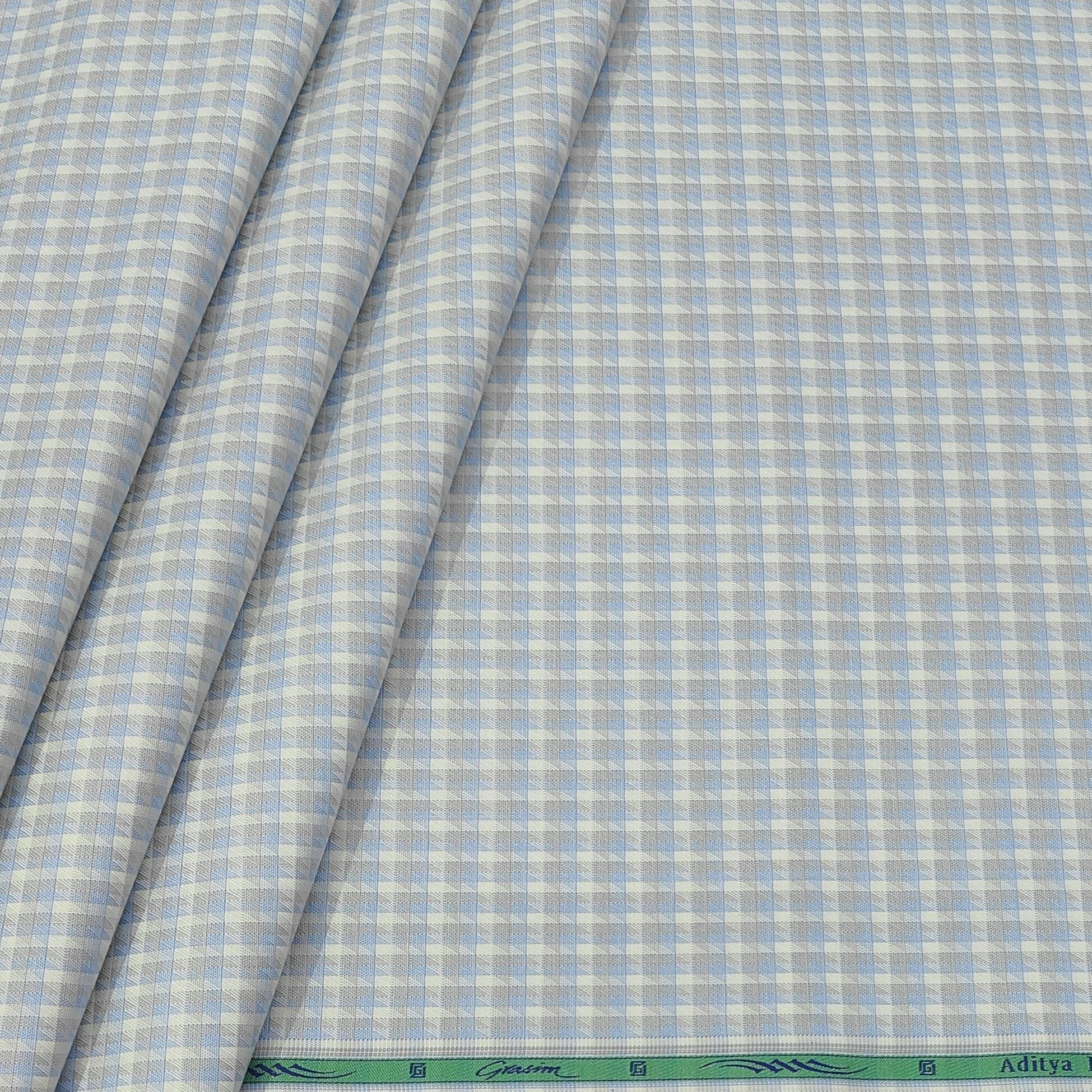 Shirt Fabric Grasim 100% Cotton Mix Check Colour Greyish N Blue