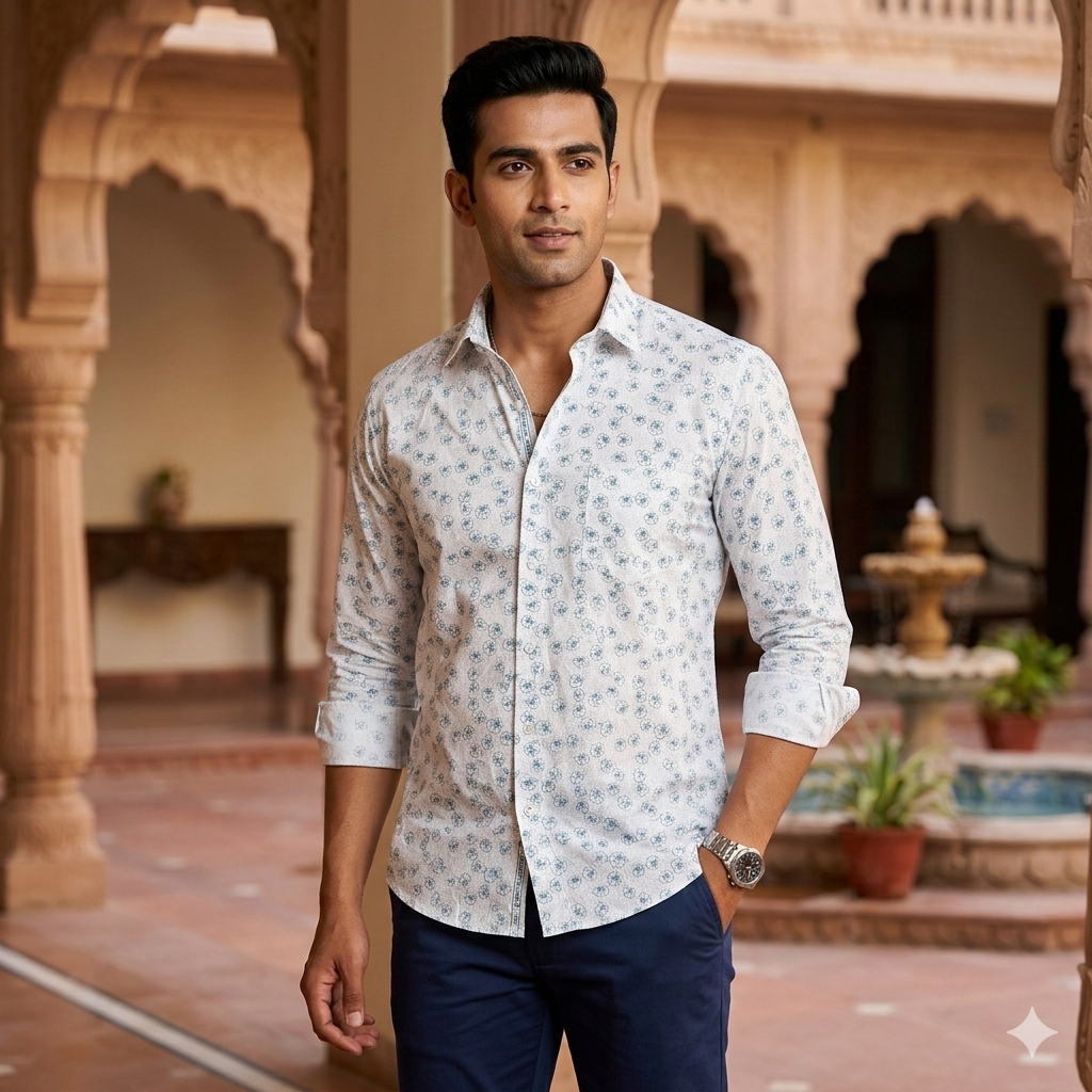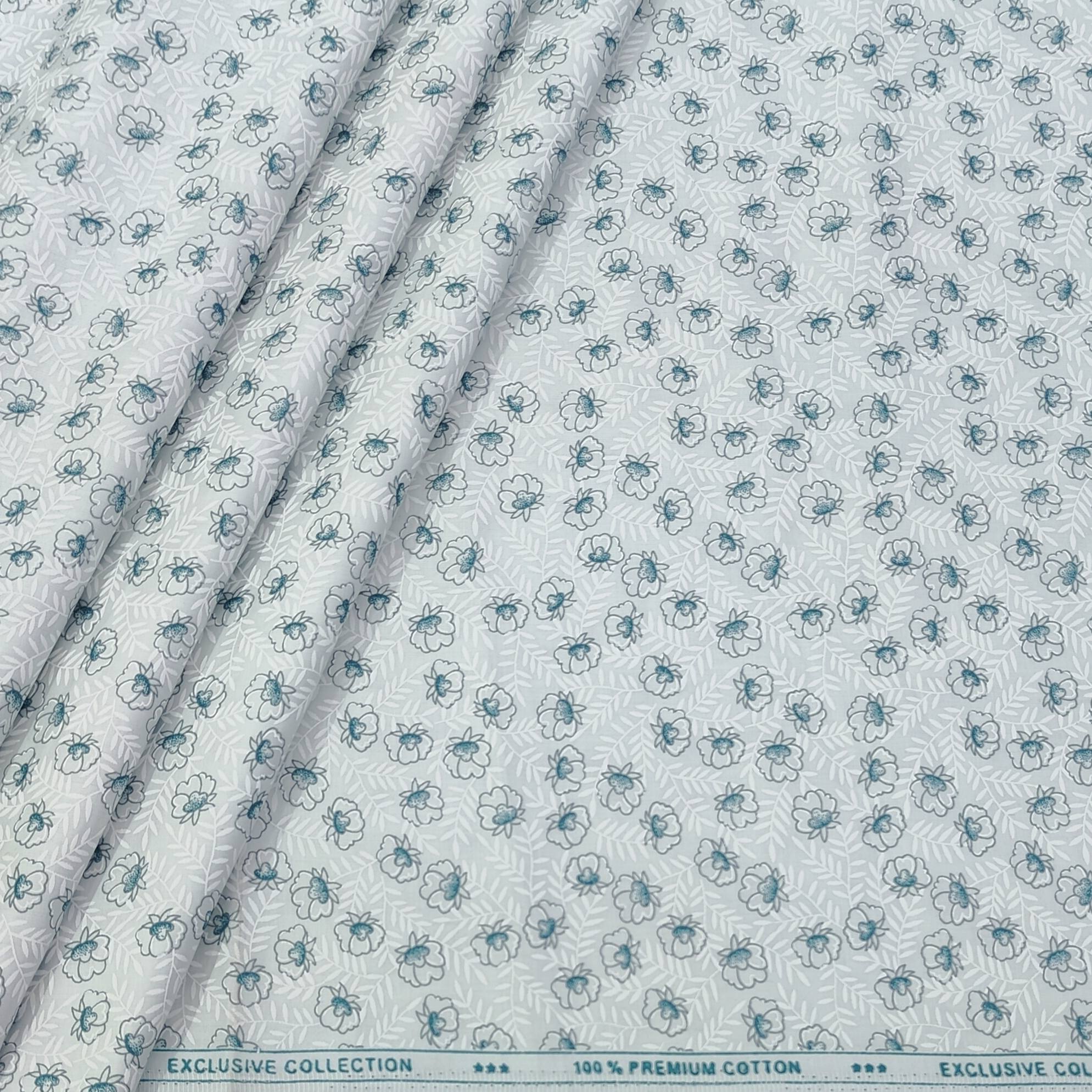 Shirt Fabric ManTire Giza Cotton Printed Colour Firozi