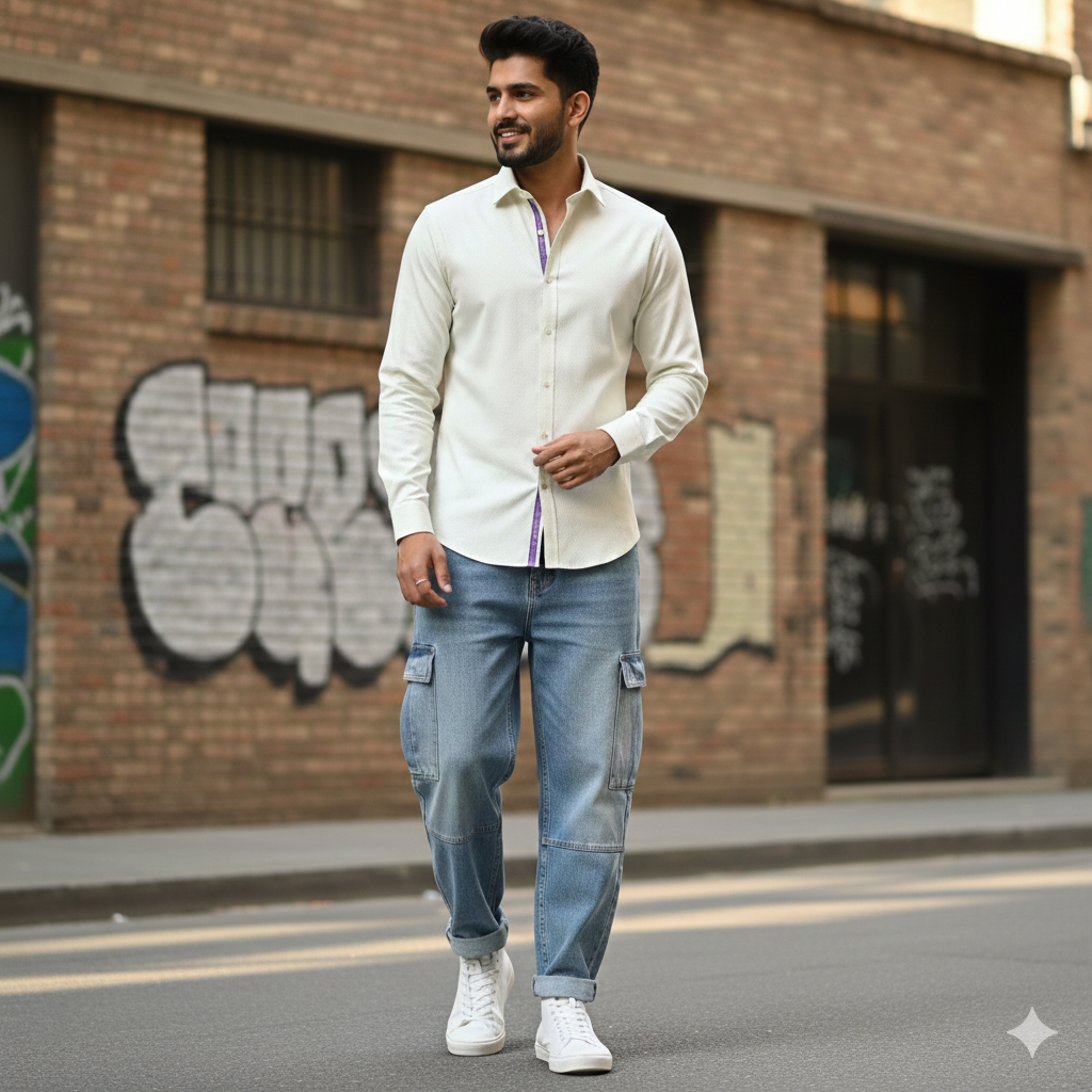 Shirt Fabric Soktas 100% Cotton Jacquard Colour Butter Cream