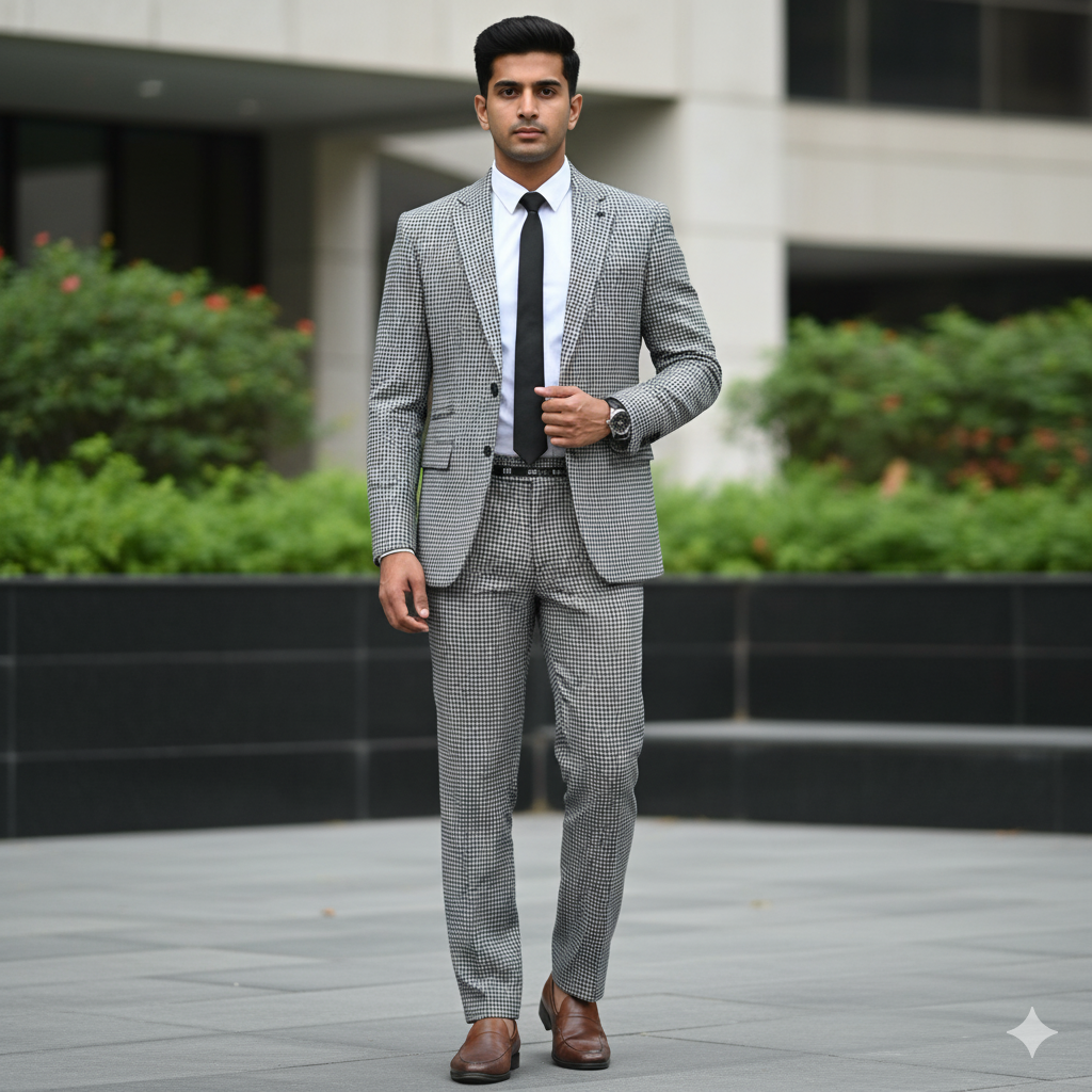 Trouser Fabric Canetti Italy Luxury TR Zig Zag Colour Black N Greyish