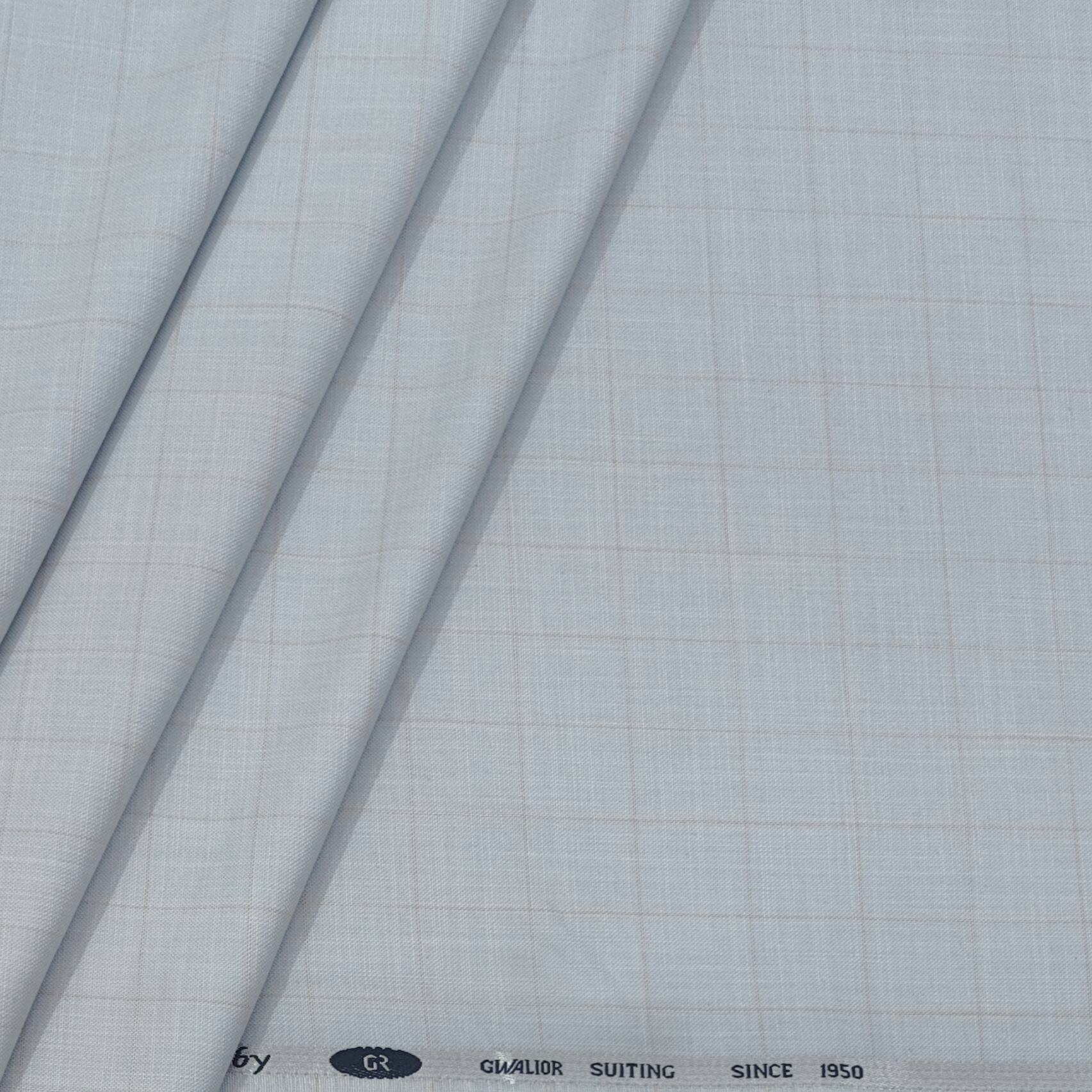 Indulge in luxury with Gr Gwalior premium trouser fabric. This Poly Viscose check fabric in sky blue is perfect for formal or party wear. Elevate your style and comfort with this high-quality pant fabric. (Puns aside, this fabric is the real deal for men's trousers).
