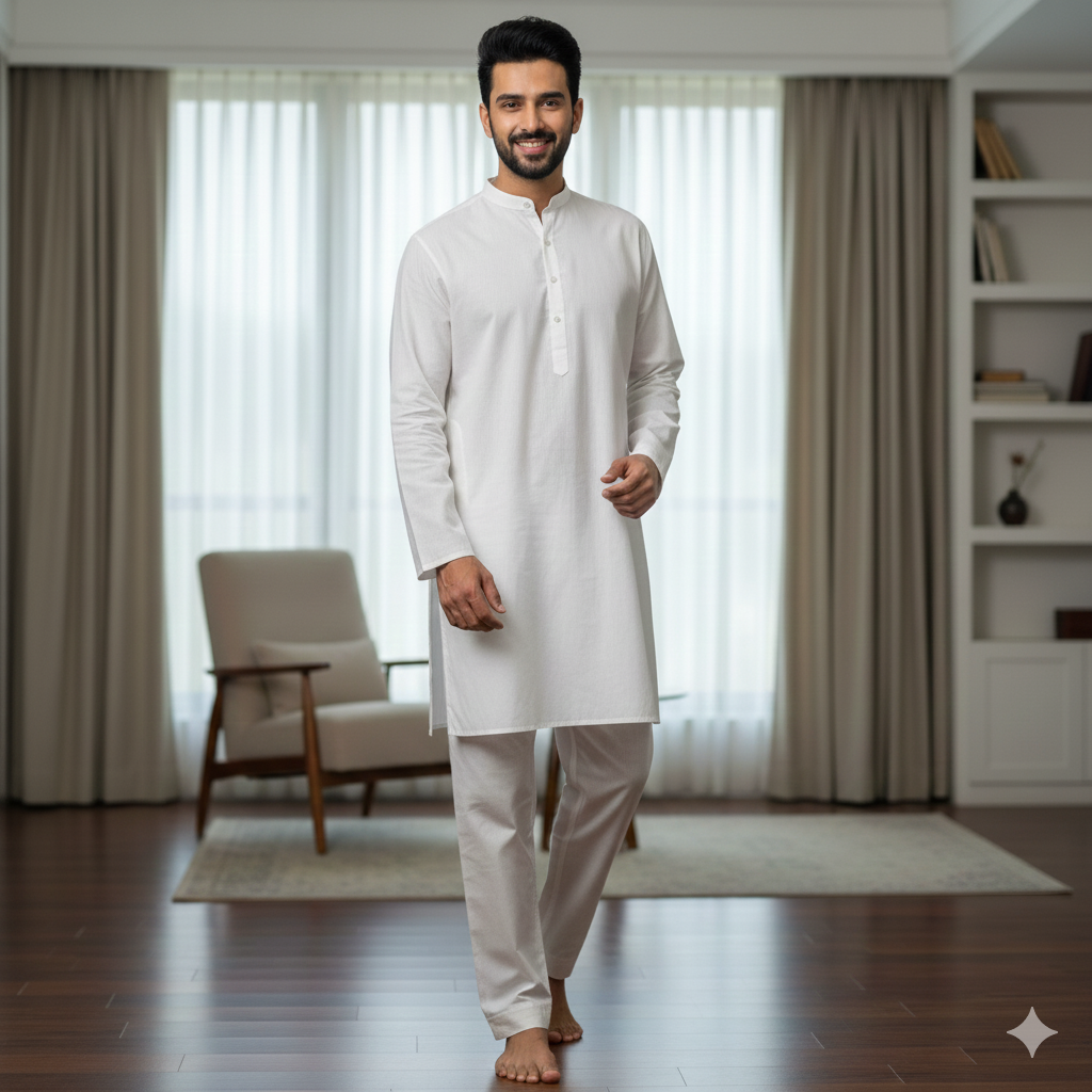 Kurta pajama Fabric Arvind Stiff Pure Cotton Slub White