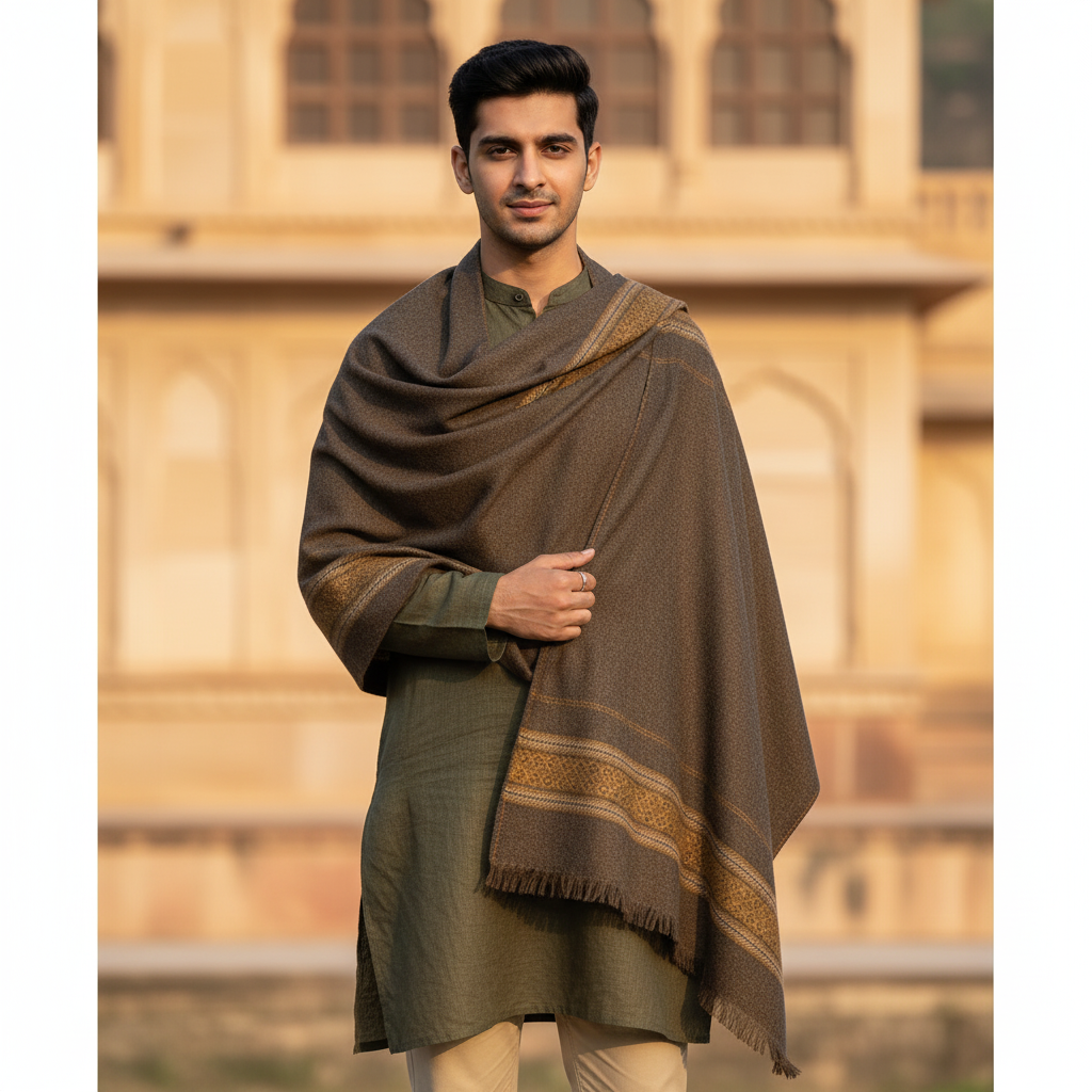 Modella Woollen Thick Shawl Lohi Himalyan With Border Colour Coffee Brown