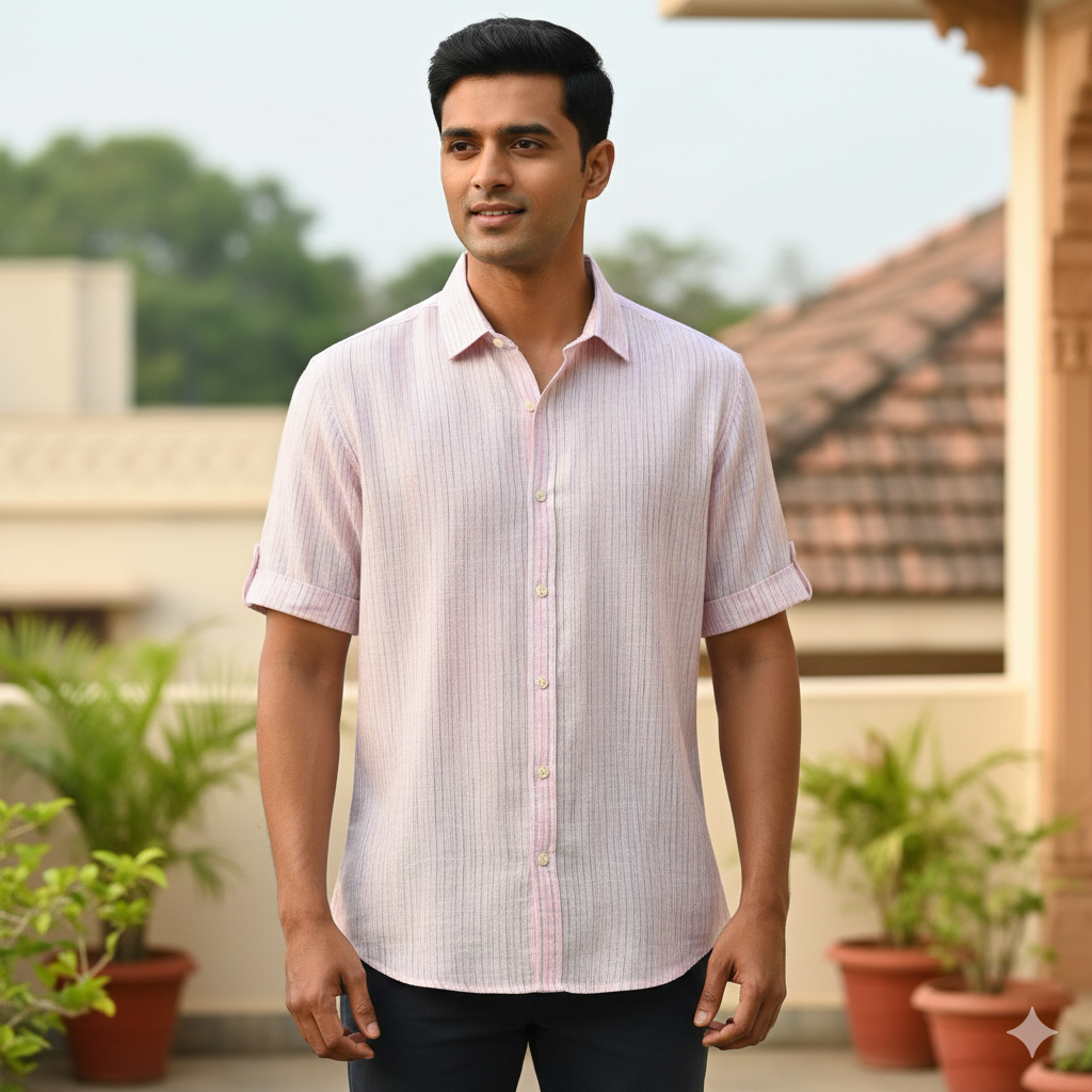 Shirt Fabric Donear 100% Linen 60Lea Pin Lining Colour Pink N Blue