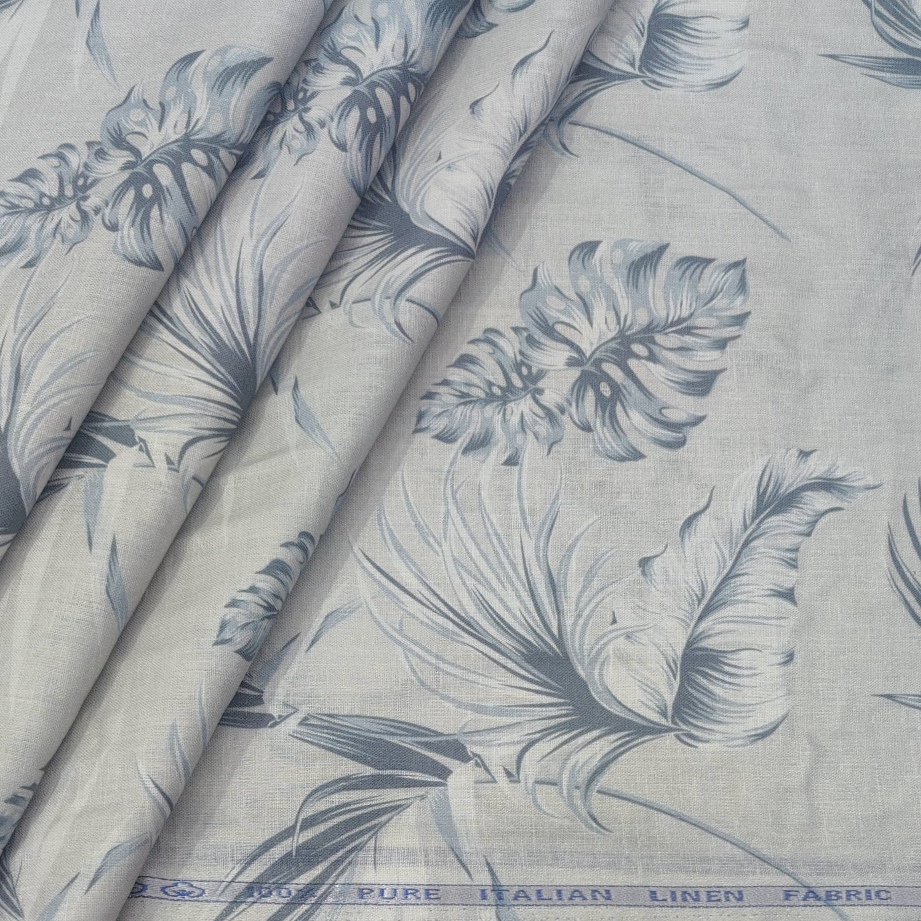 Shirt Fabric ManTire 100% Cotton Premium Linen Look Digital Print Colour Faded Blue N Light Grey