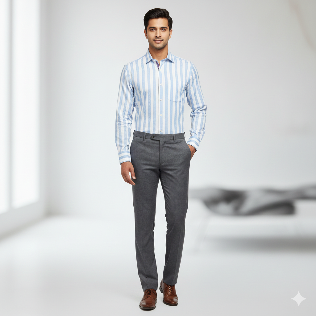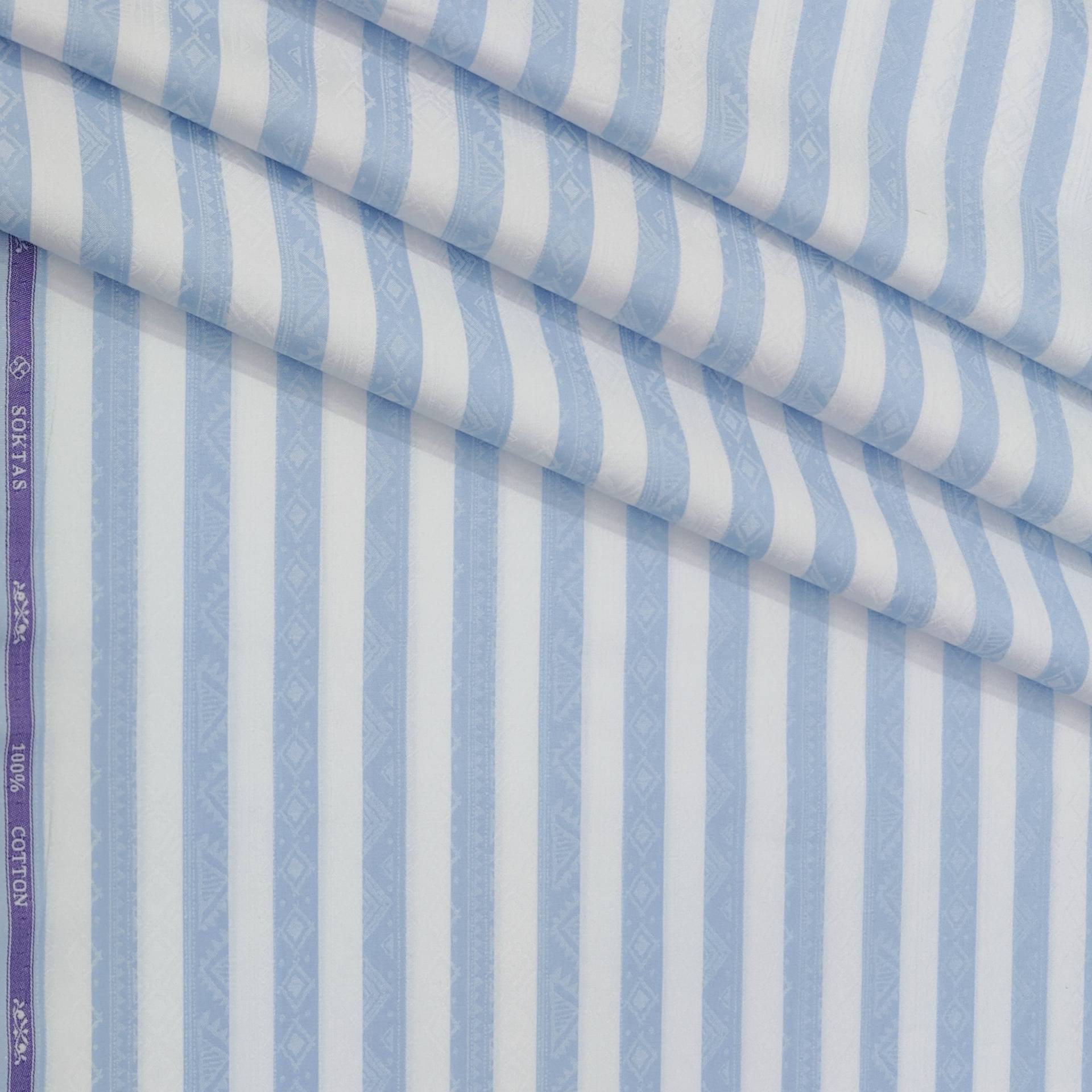 Introducing Soktas Finest Cotton Jacquard fabric in Blue and White. Made from Giza cotton for a luxurious and premium quality feel. Perfect for formal occasions, parties, and weddings. Upgrade your wardrobe with this pure cotton shirt fabric from Soktas.