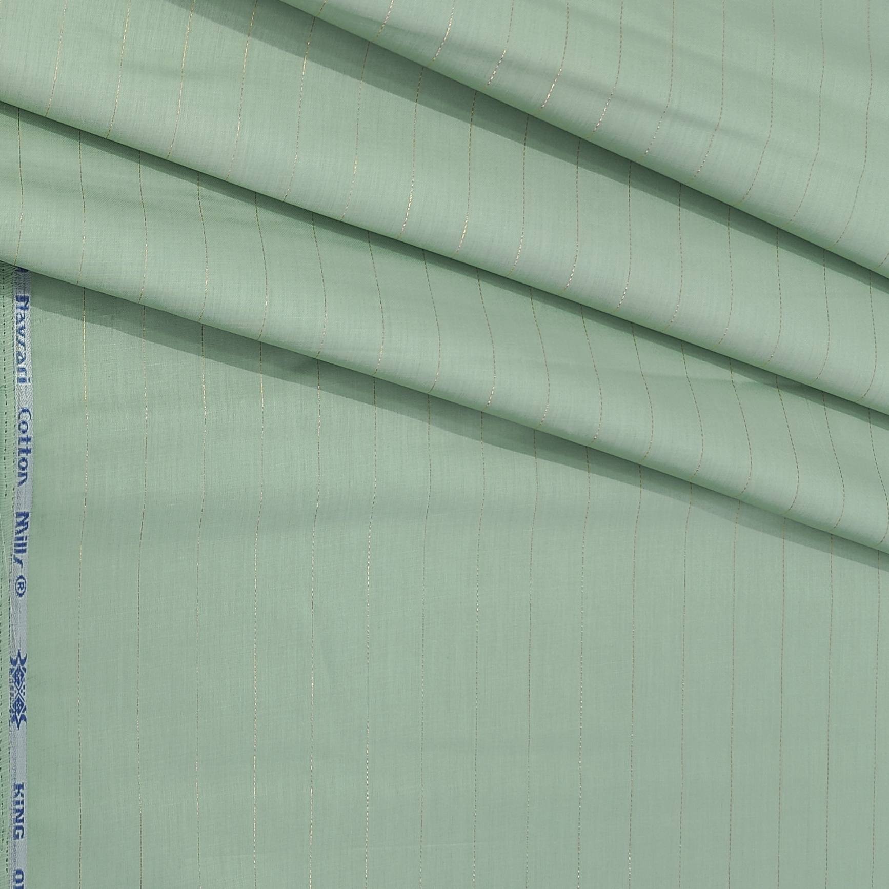 "Upgrade your wardrobe with our Shirt n Kurta Fabric in Pistachio Green. Made from pure cotton, this premium quality fabric adds a touch of luxury to any shirt or kurta. Get the best of both worlds with our ManTire fabric - stiff yet comfortable. Perfect for any occasion!"