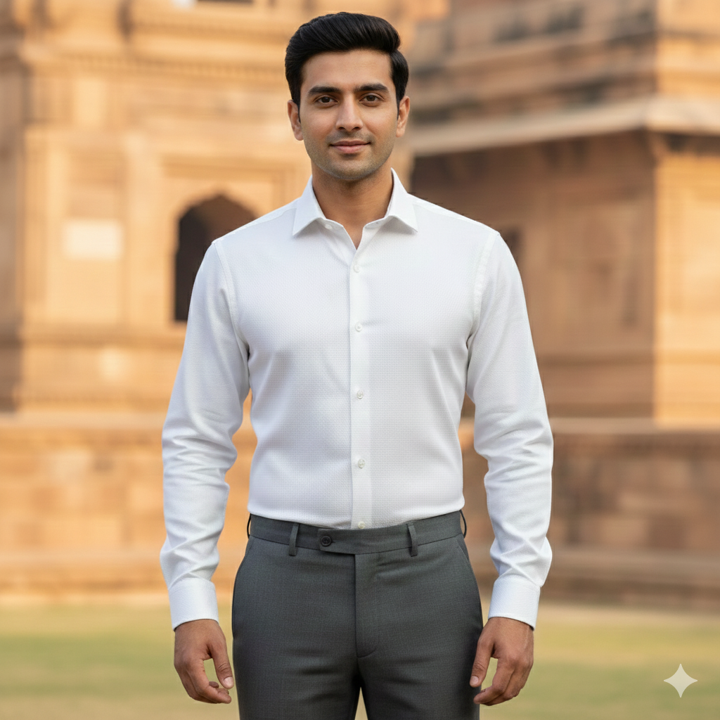 Shirt Fabric Soktas 2 Ply 100s Finest Giza Cotton Jacquard Colour White