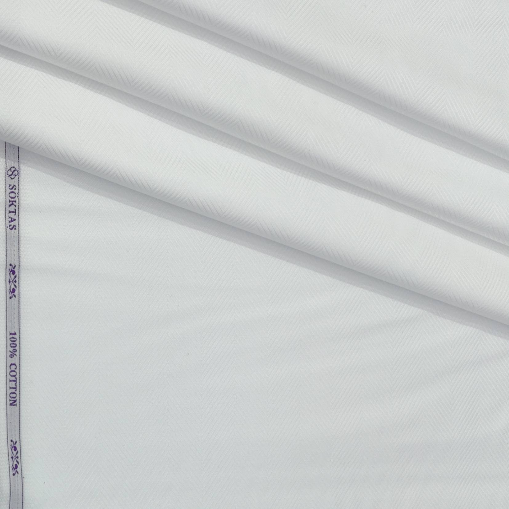 "Upgrade your wardrobe with our finest Soktas 100% cotton herringbone shirt fabric. Enjoy premium quality and luxury with this formal, party, or wedding shirt. Made from pure Giza cotton, this versatile fabric is perfect for any occasion."
