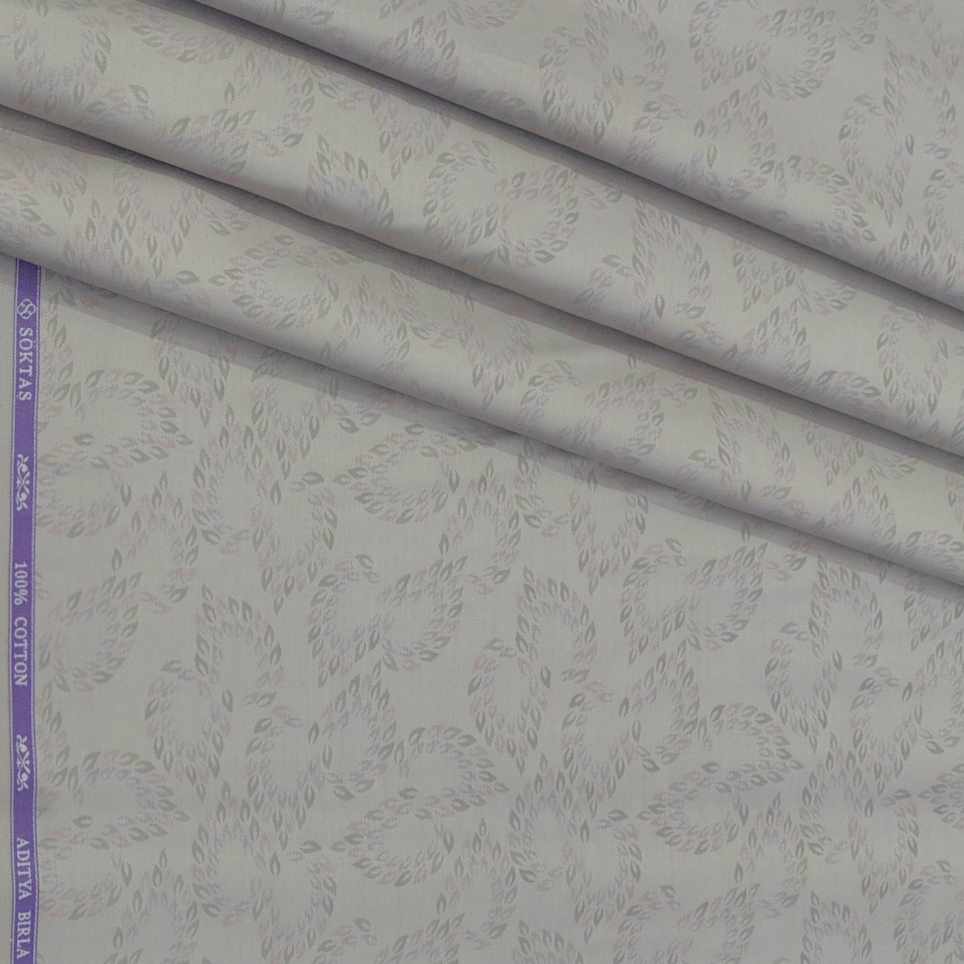 Crafted with 100% pure Giza cotton, this Soktas Finest shirt fabric boasts premium quality and luxury. Its intricate jacquard design adds a touch of sophistication, making it perfect for formal occasions, parties, and weddings. Elevate your wardrobe with this premium men's shirt fabric in a dusty greyish brown color.