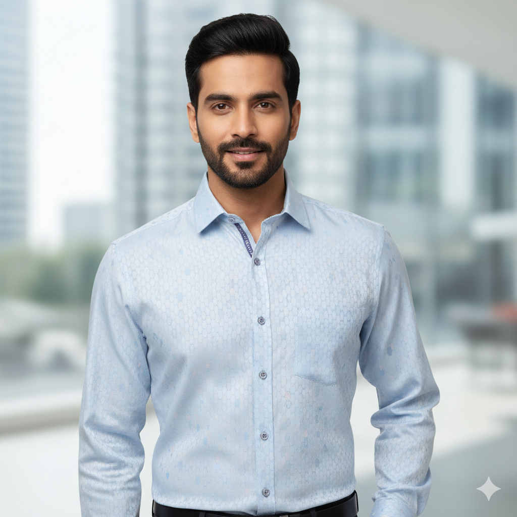 Shirt Fabric Soktas Finest 80s Giza Cotton Jacquard Colour Faded Blue