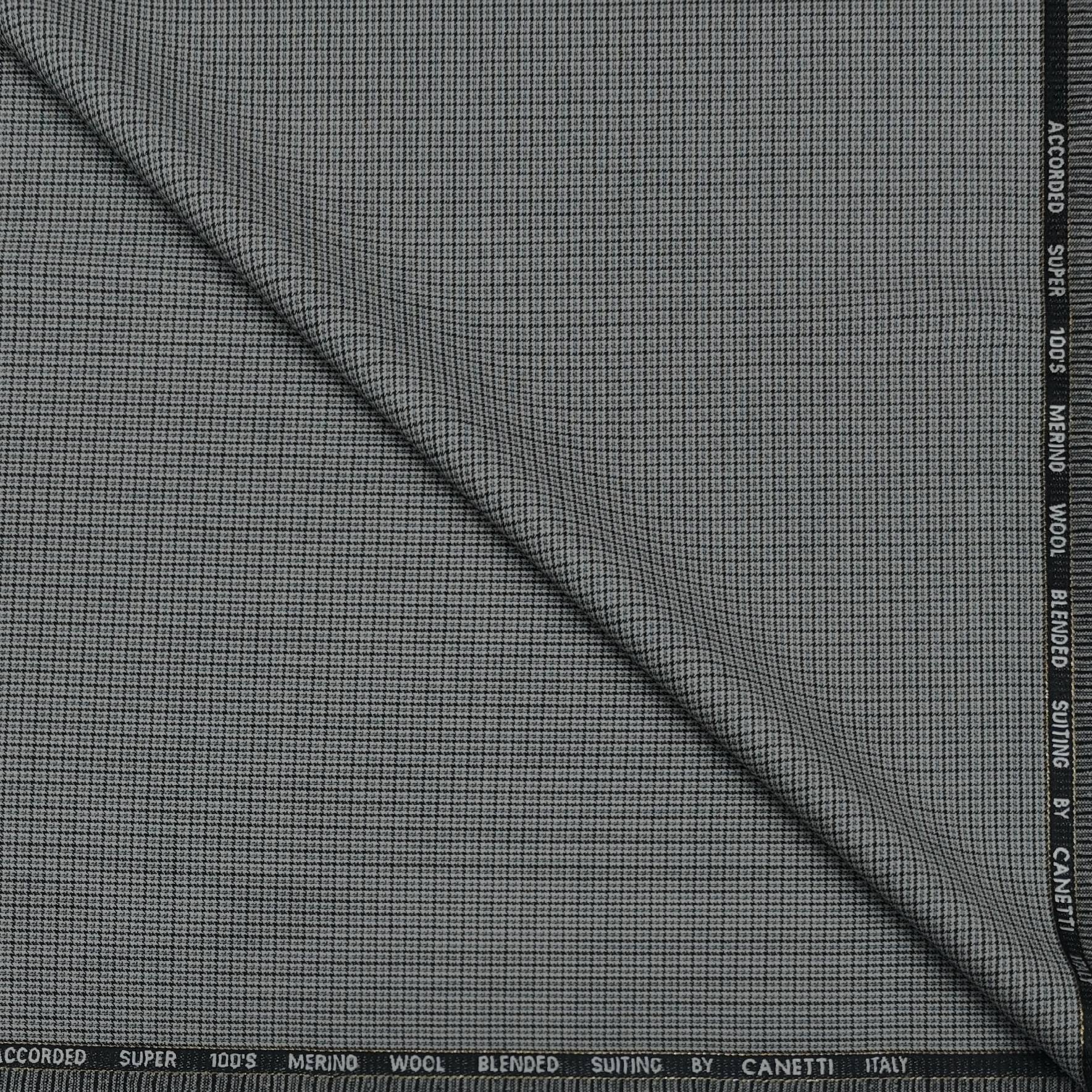 Trouser Fabric Canetti Italy Merino 100s Wool Blend Pin Check Colour Greenish Grey