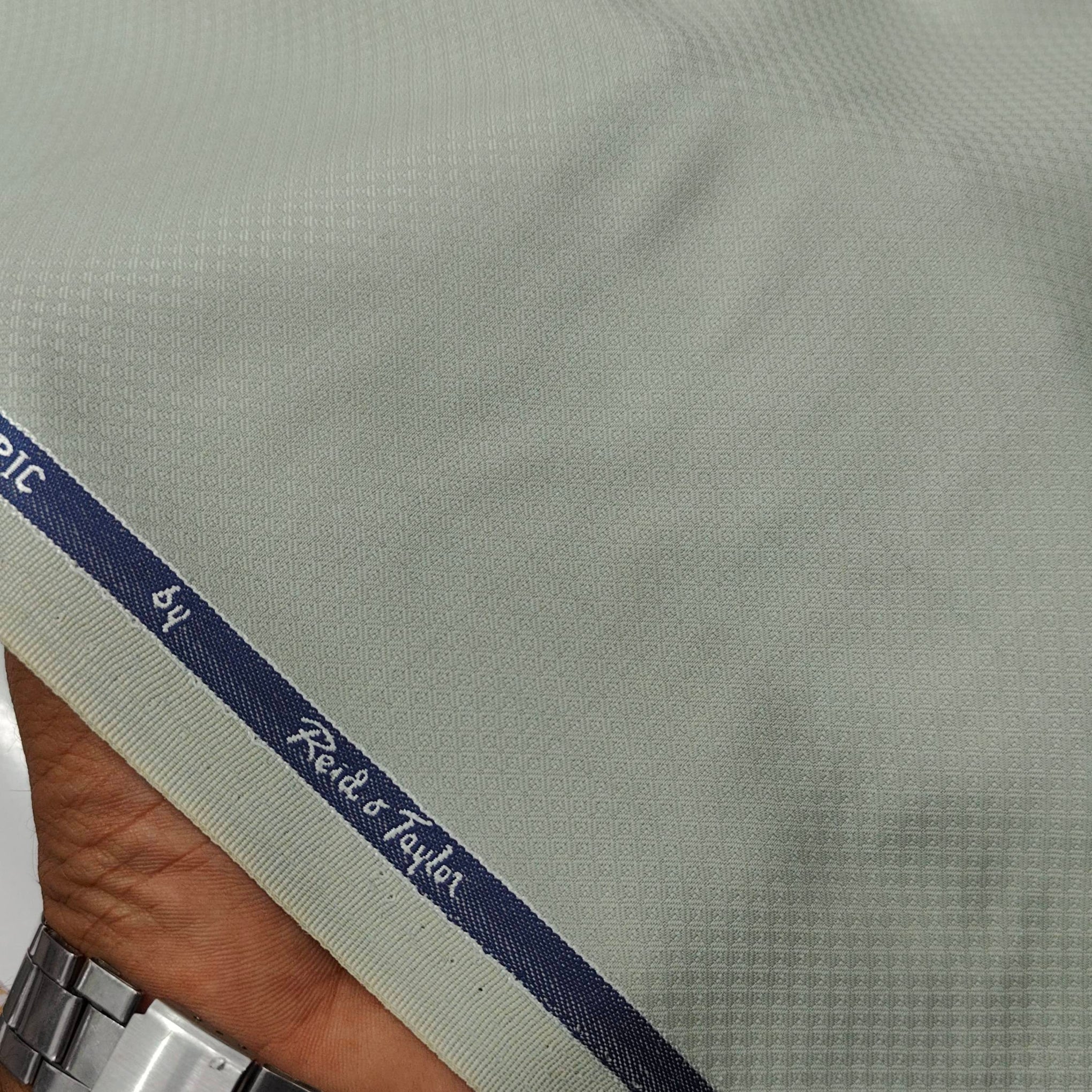 Elevate your wardrobe with Reid & Taylor Luxurious Super 110s Wool Blended Dobby Color Gin Green Trouser Fabric. Indulge in the premium quality of this luxurious fabric, perfect for any occasion - from parties to weddings. With a blend of wool, this trouser fabric combines comfort and style for the fashionable man.