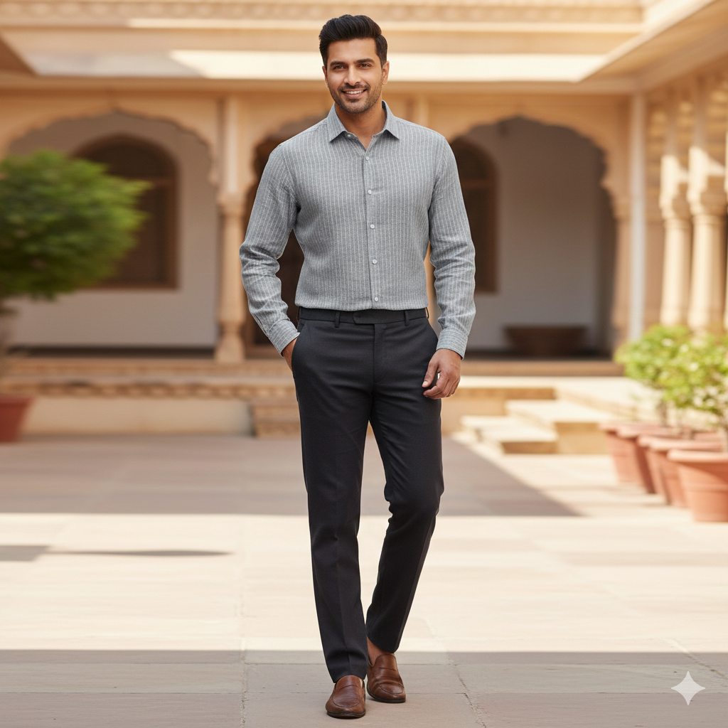 Elevate your wardrobe with Reid & Taylor's Super Fine 120s Wool Blended Dotted Trouser Fabric. Crafted with luxury quality, this woolen fabric is perfect for special occasions and adds a touch of sophistication to any look. Perfect for men's party wear, weddings, and more.