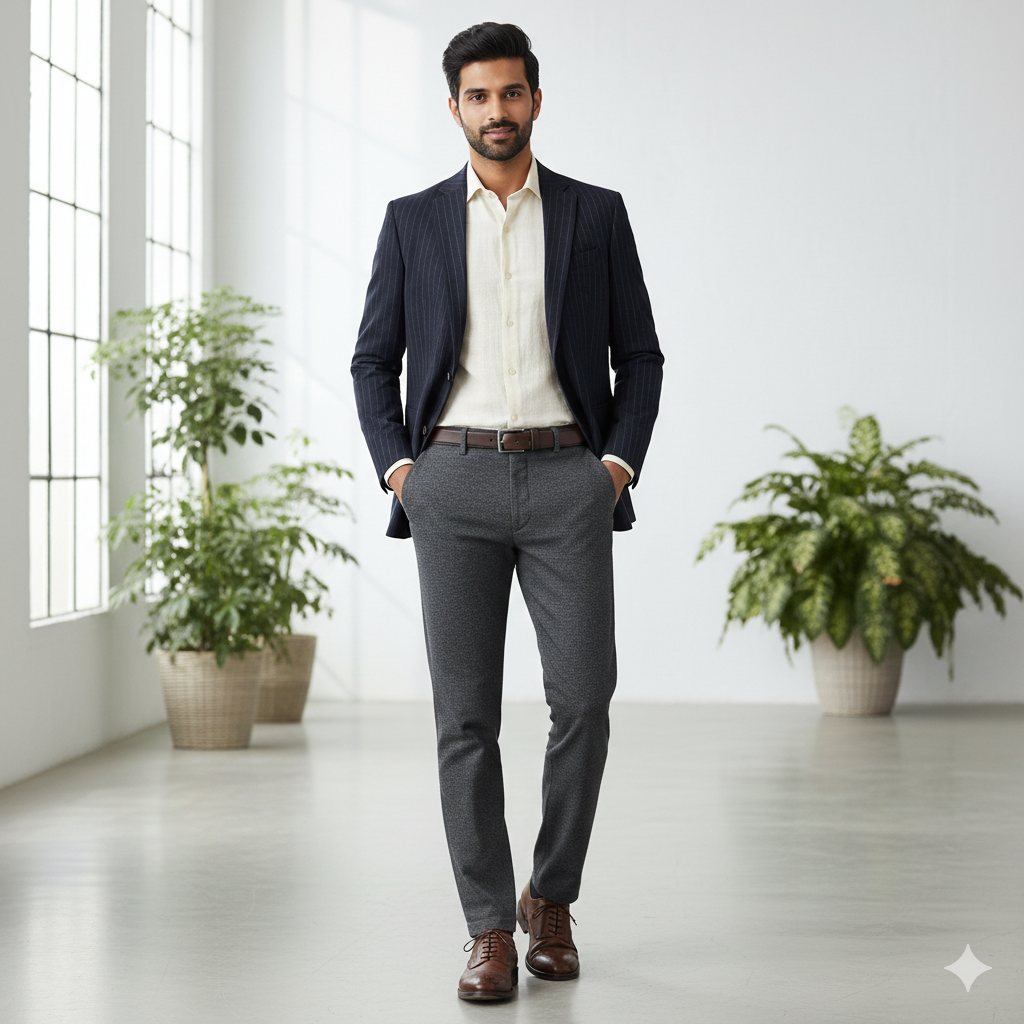 The Canetti Italy Luxury 100s Wool Blended Worsted Trouser Fabric in grey is a premium-quality textile designed for formal and party wear. With its versatile application, it is suitable for weddings and various occasions, ensuring elegance and comfort for men's trousers.