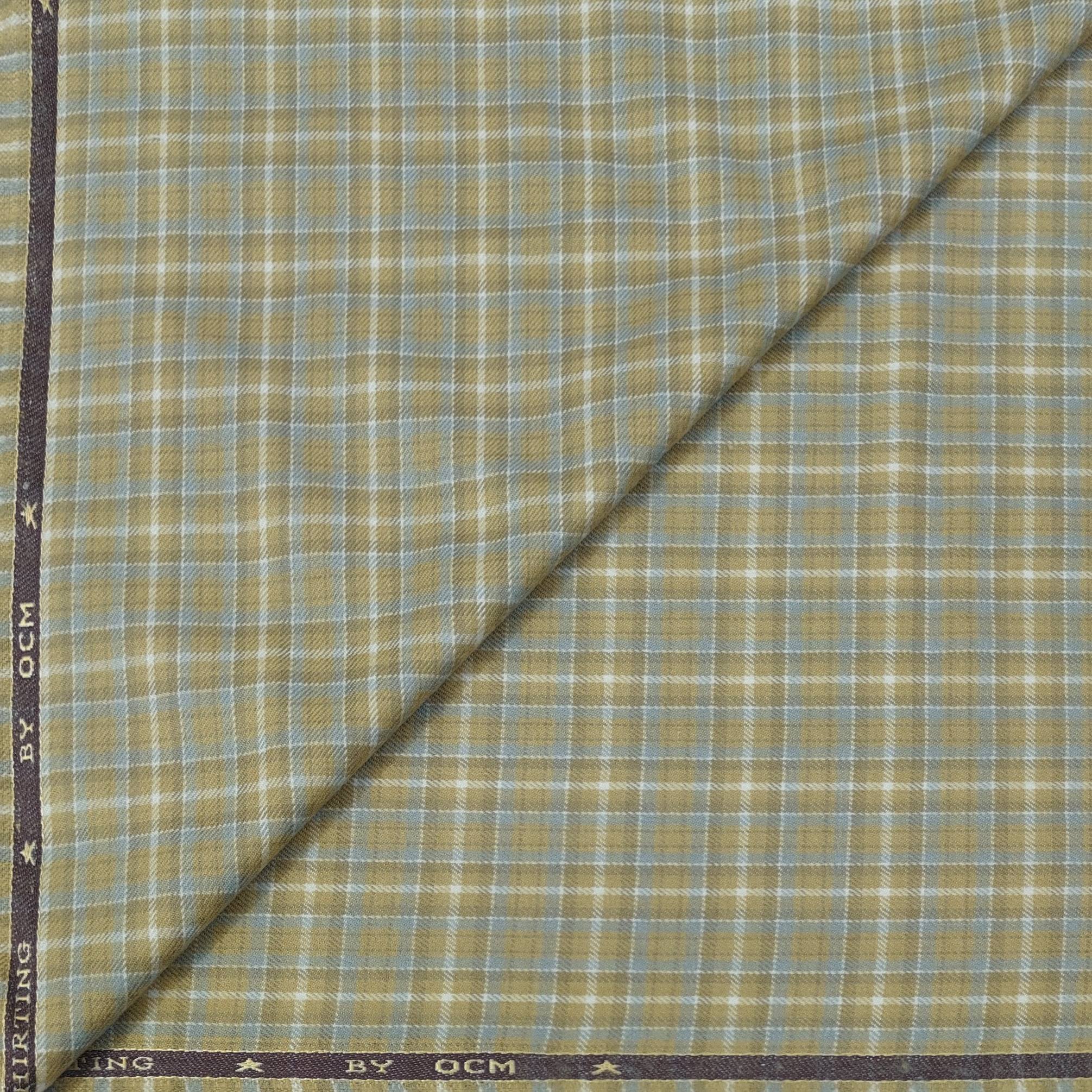 Upgrade your wardrobe with our Warm Shirt Fabric, featuring a mix of OCM fibers for a comfortable and luxurious feel. Perfect for the colder months, this premium quality fabric will keep you warm while still looking stylish. Available in a stylish golden beige check, this fabric is perfect for men's shirts.