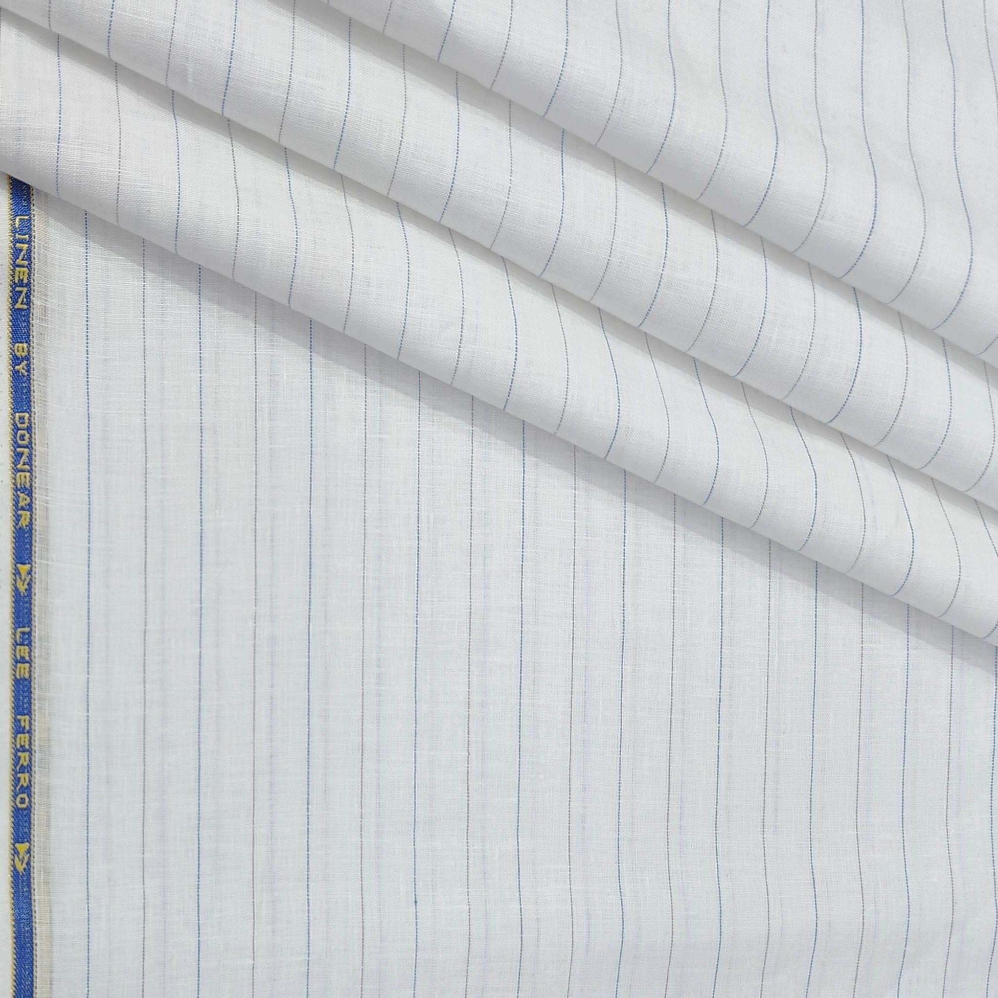 The Donear 60Lea fabric is a premium-quality, 100% linen blend in a sophisticated blue and white design. Ideal for men's formal attire, this luxury shirt fabric offers breathability and comfort, making it suitable for parties and weddings. Its pure linen composition ensures durability and a refined appearance.
