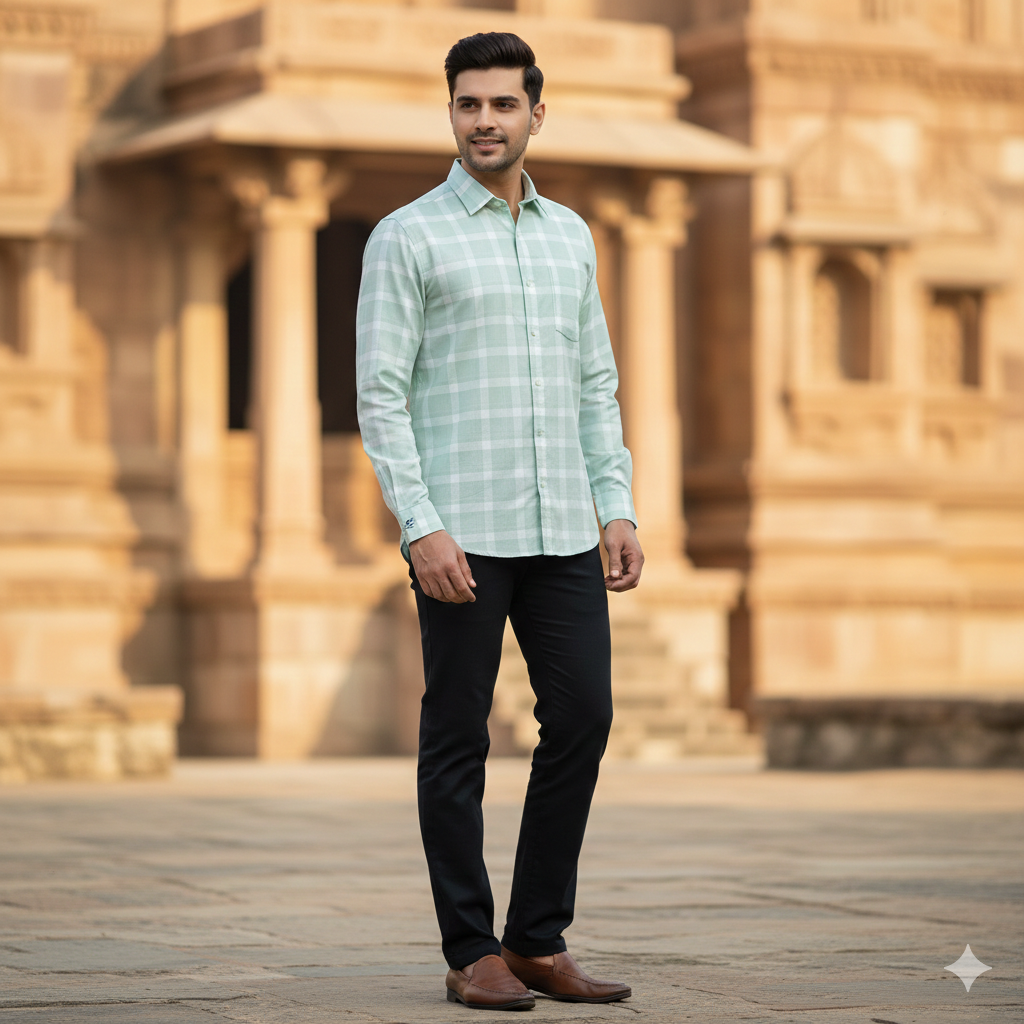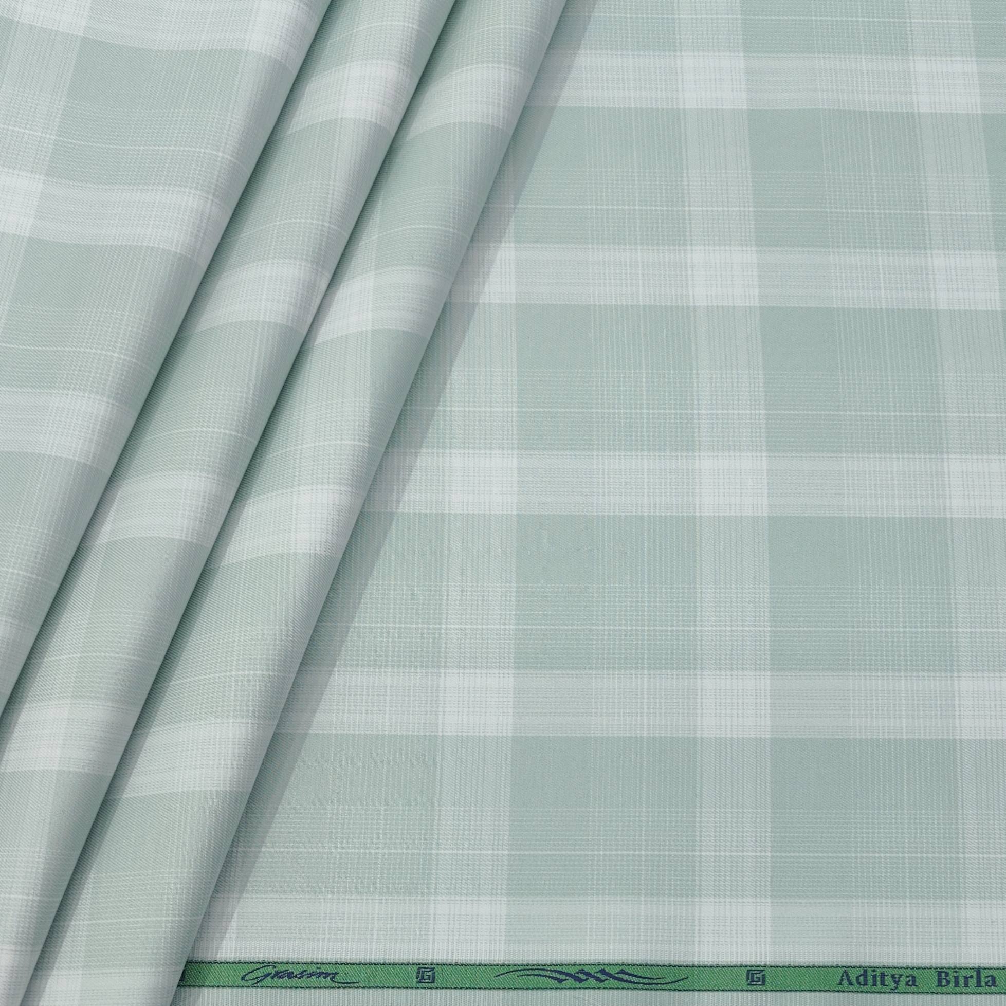 Discover the comfort of the Grasim 100% Cotton Broad Check Shirt Fabric in mint green. This premium-quality, luxurious fabric is perfect for creating formal and party shirts, ensuring you look sharp and feel at ease, whether at a wedding or in the office. Elevate your wardrobe with this versatile choice.